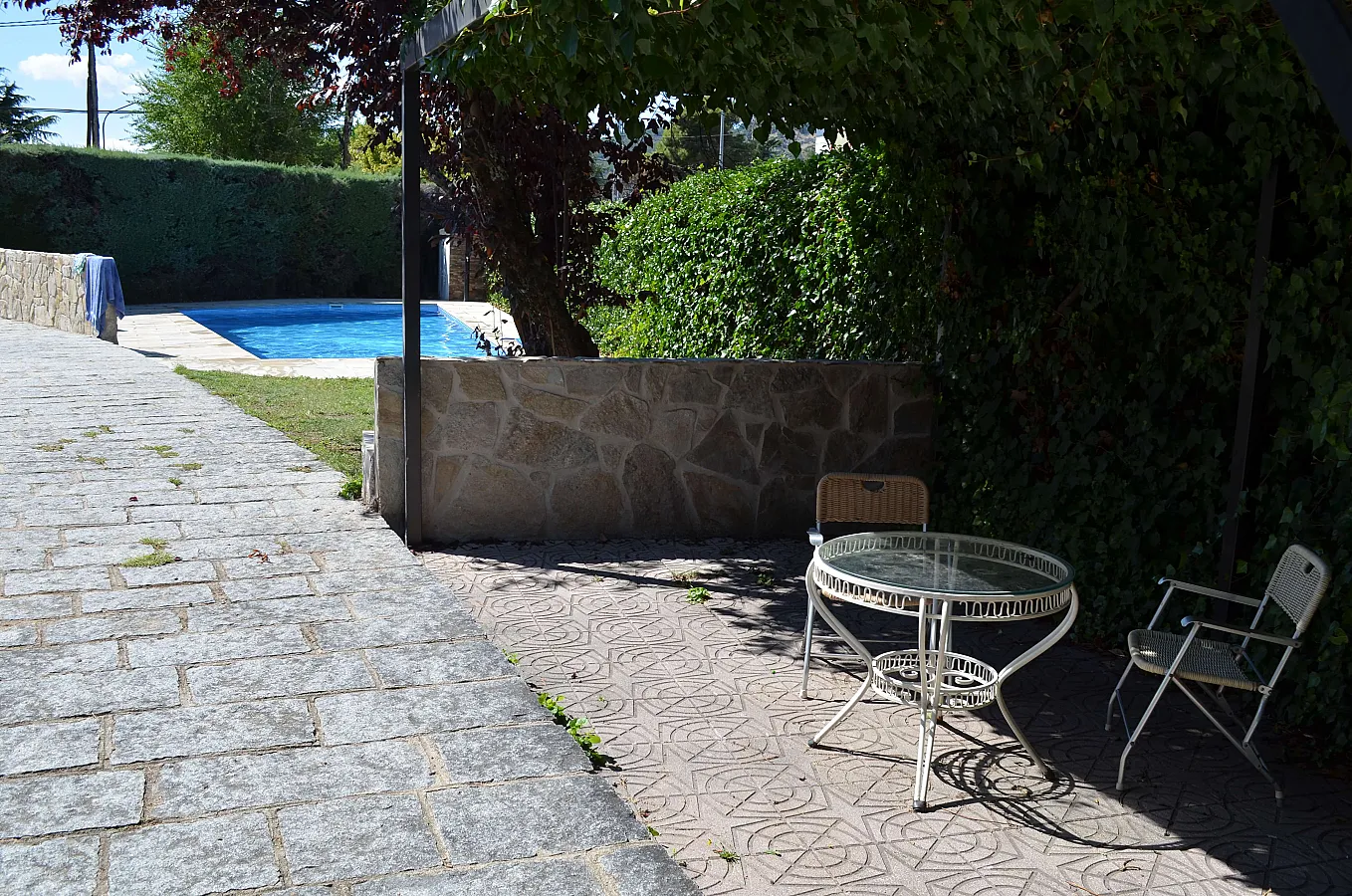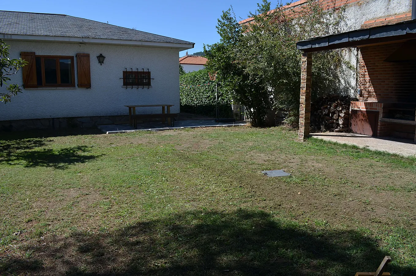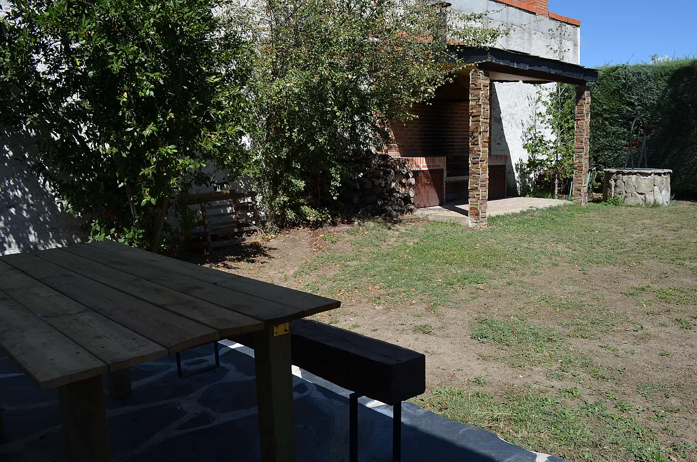 Chalet rústico muy amplio, en una sola planta, para una o dos familias o grupo de amigos, con chimenea, totalmente equipado, con piscina particular grande, barbacoa, 3 porches, cabaña en un árbol y amplio jardín con cesped. Casa muy cómoda con internet, wifi, juegos de mesa, etc. Con 4 habitaciones amplias con armarios, sala de juegos para el disfrute y relax, salón comedor muy rústico con chimenea, cocina muy amplia totalmente equipada y 3 baños.