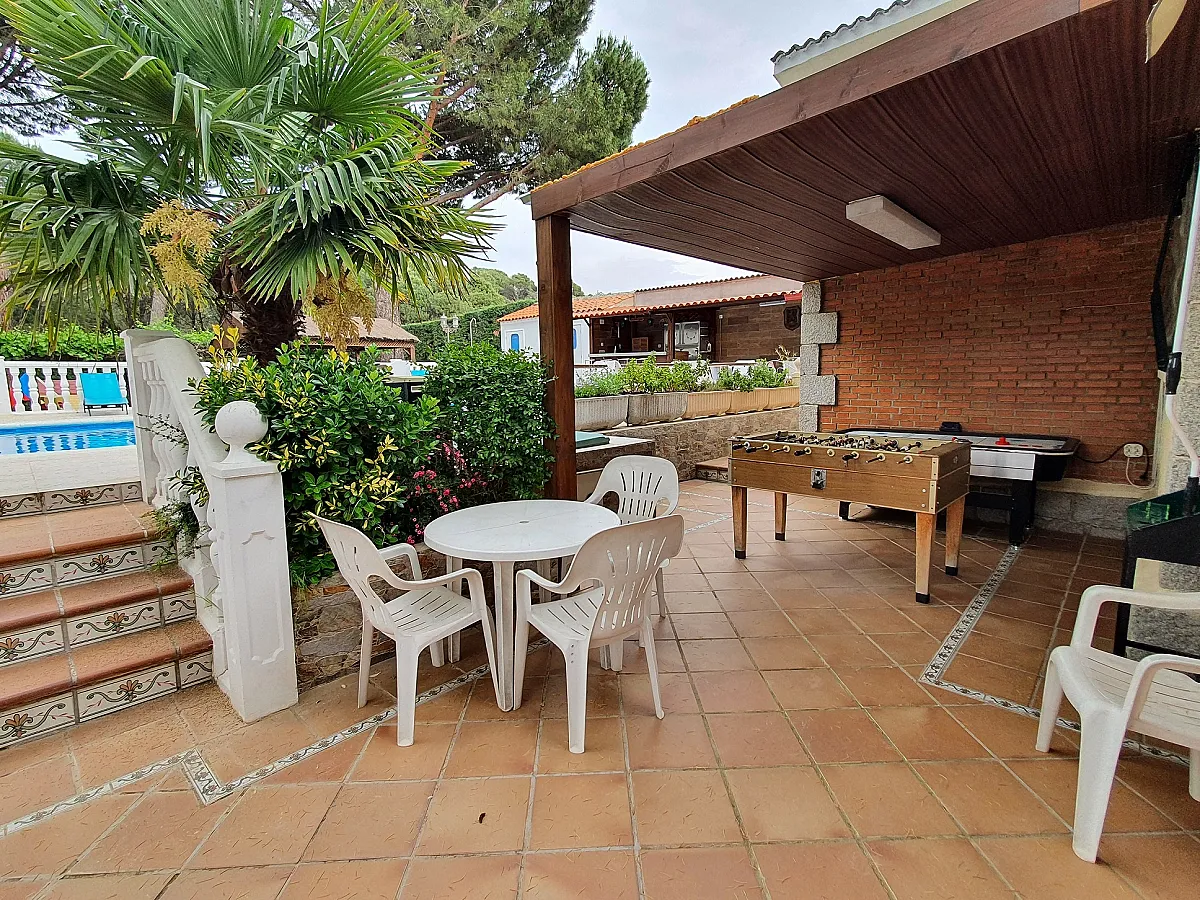 La piscina cuenta con baño, ducha y vestuario exterior. Junto a la piscina, hay una zona de bar equipada con botellero frigorífico, armario frigorífico para conservación y congelación, fregadero y máquina de hot dog.