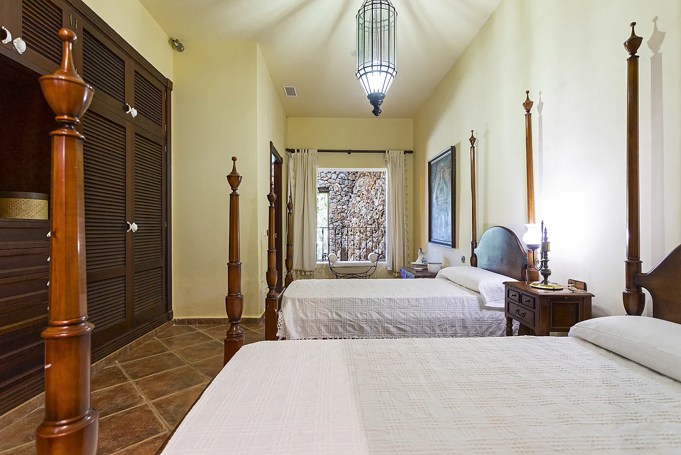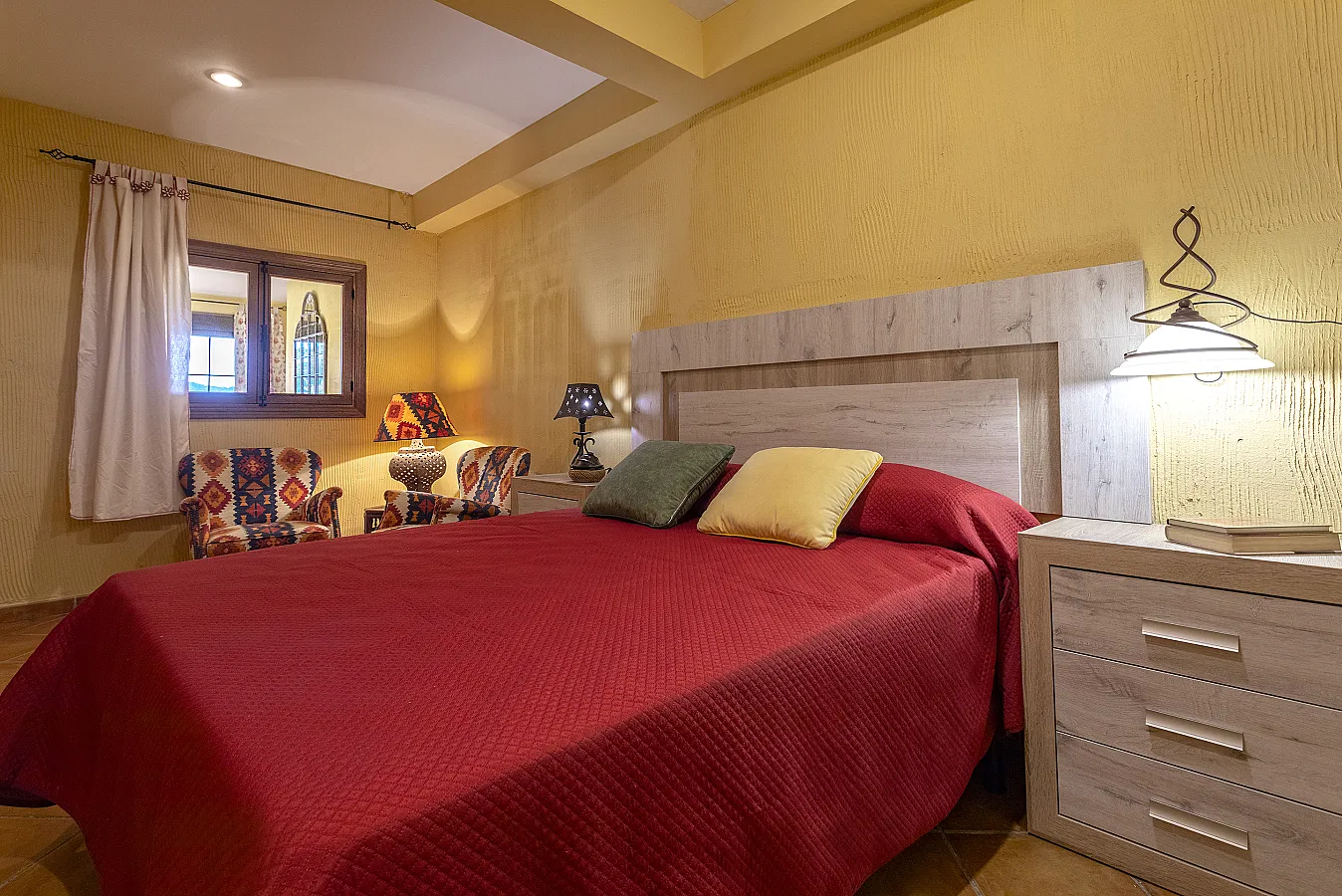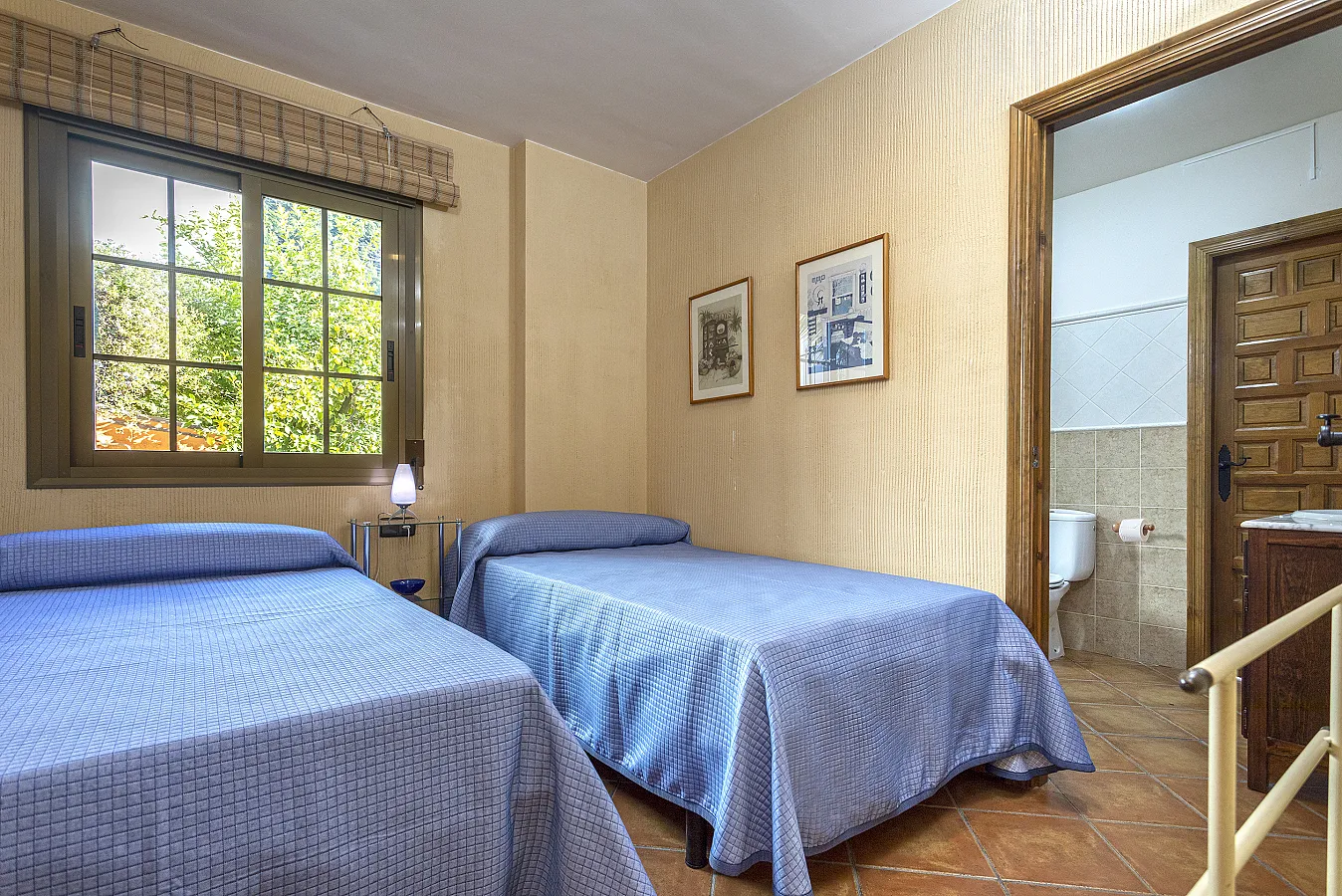 En planta alta hay tres dormitorios, dos con cama de matrimonio y uno con dos camas, salón, cuarto de baño y aseo.