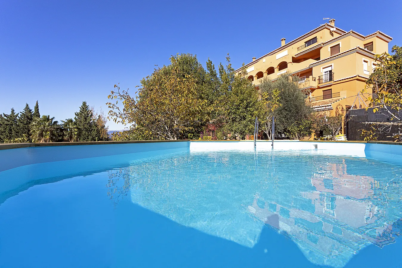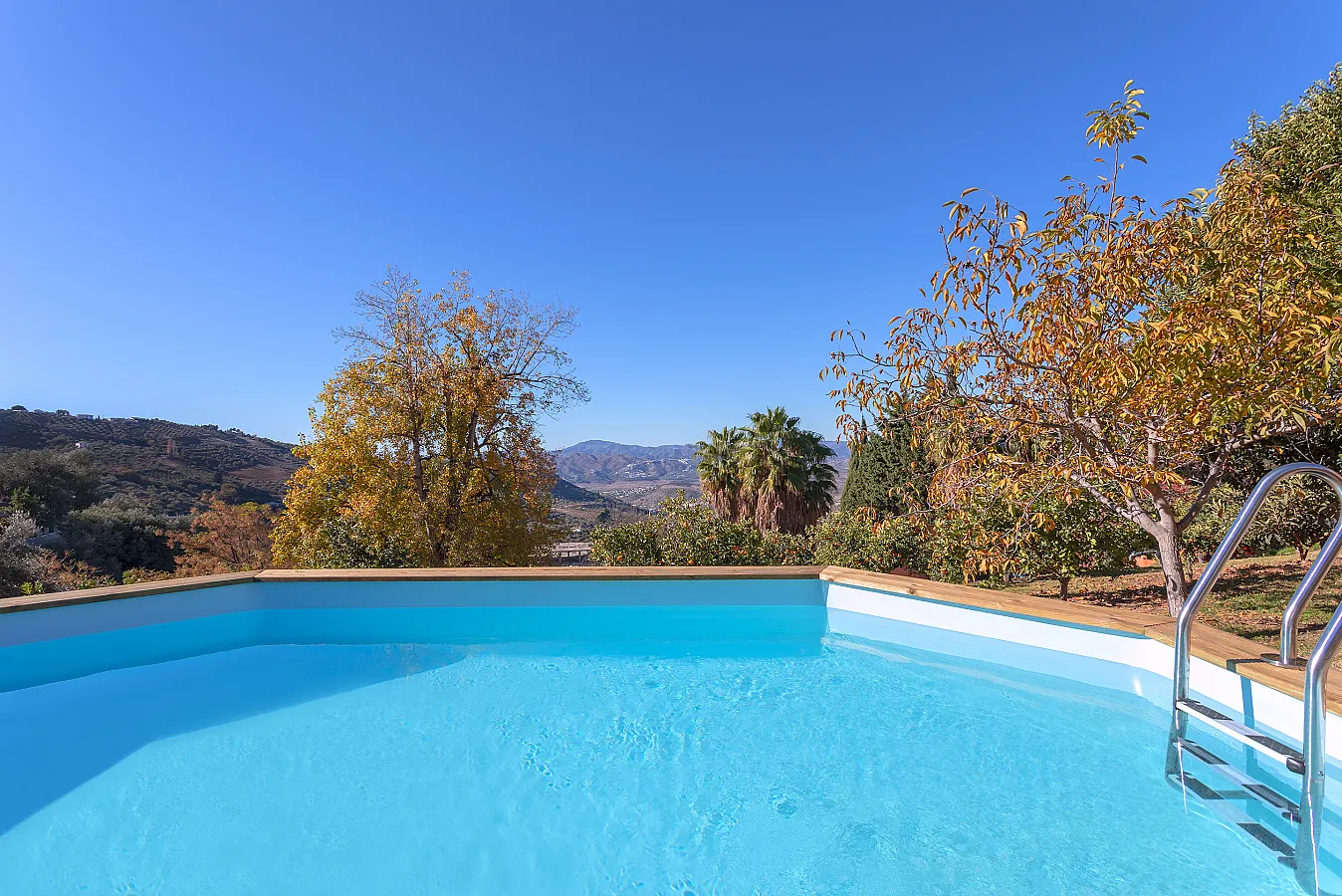 Casa de dos plantas con piscina privada exterior y piscina interior climatizada, amplia zona de césped con huerta de naranjos y frutales, de fácil acceso en el pueblo de Alcaucín.