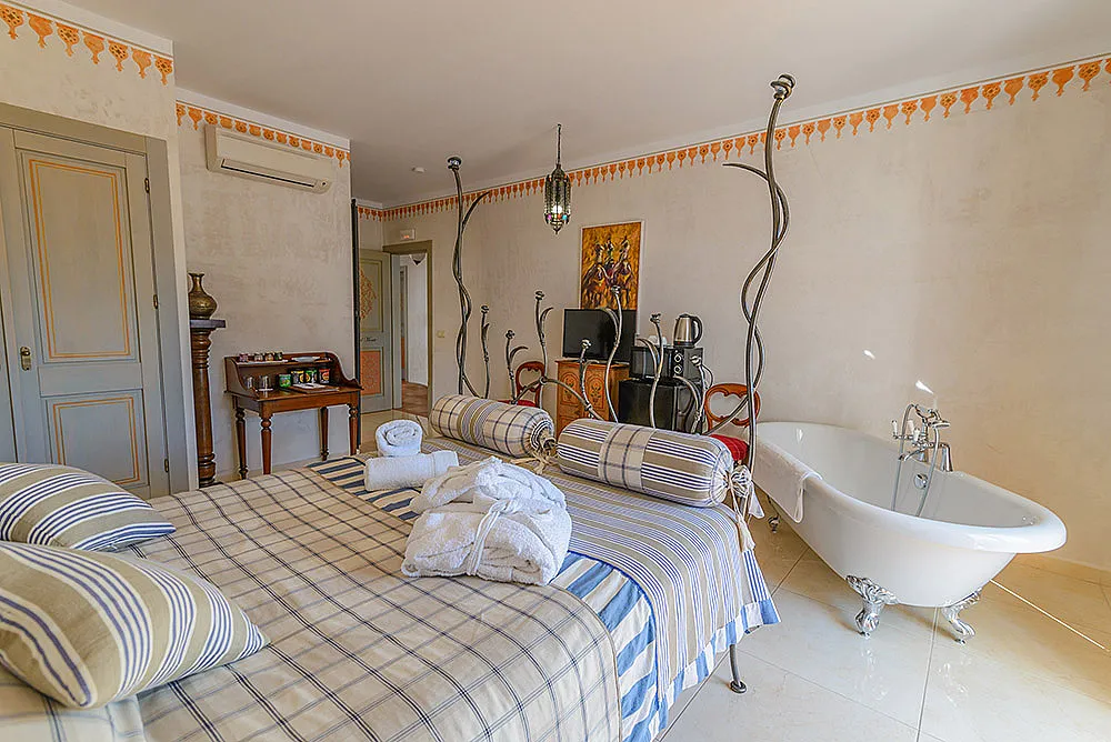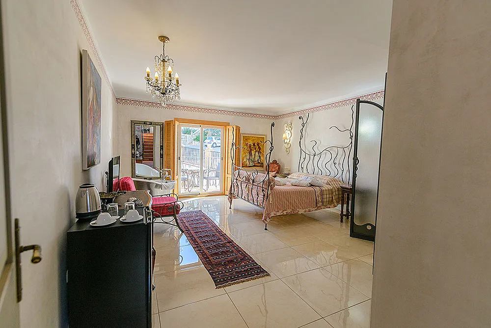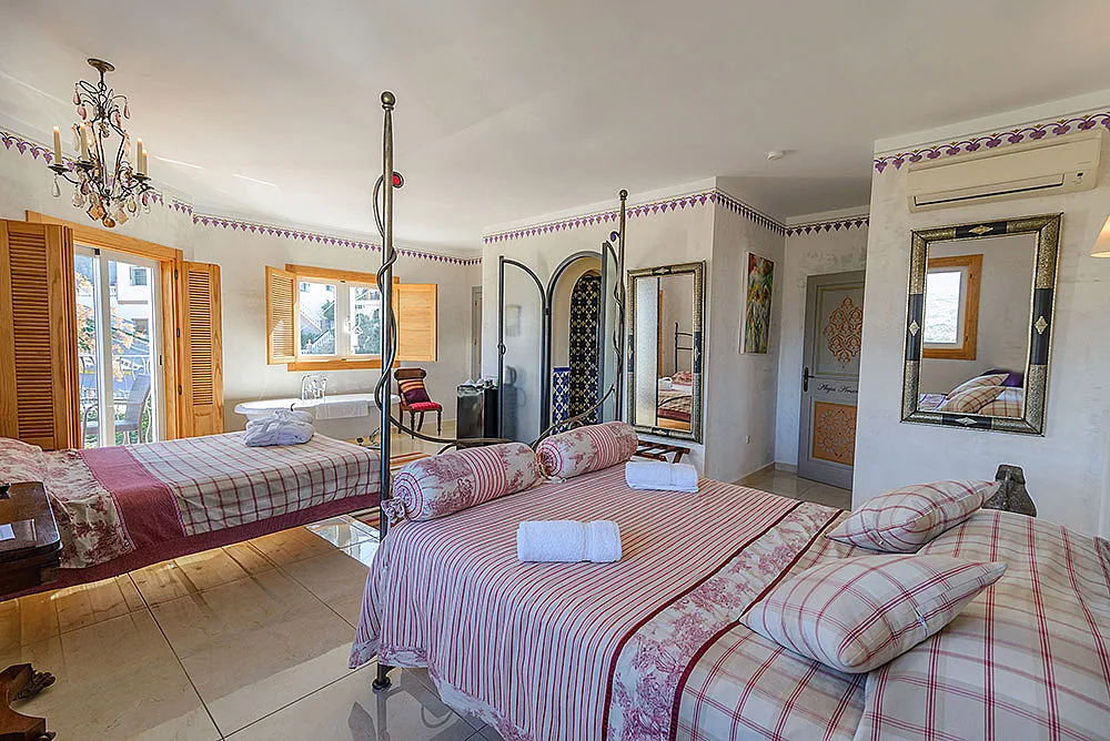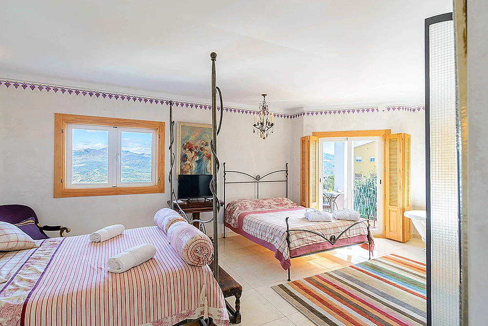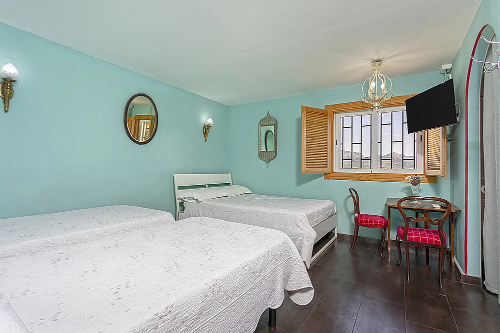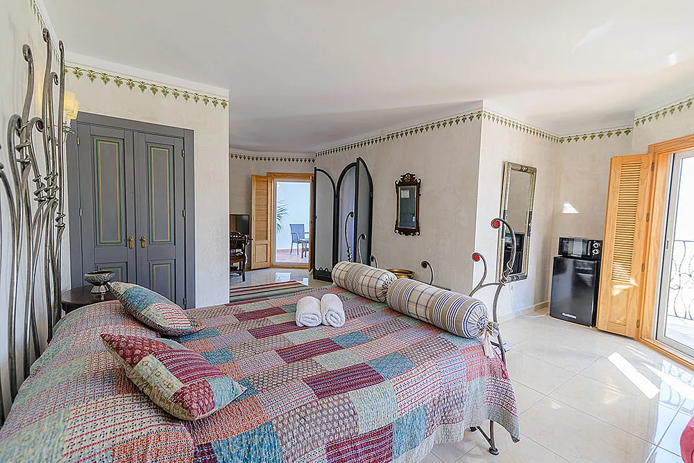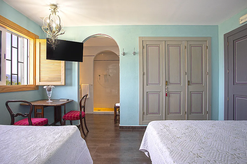 Seis habitaciones con cama de matrimonio, terraza y baño privado con ducha y bañera. Una habitación con dos camas de matrimonio y baño y una habitación familiar con capacidad hasta dos adultos y cuatro niños con baño.