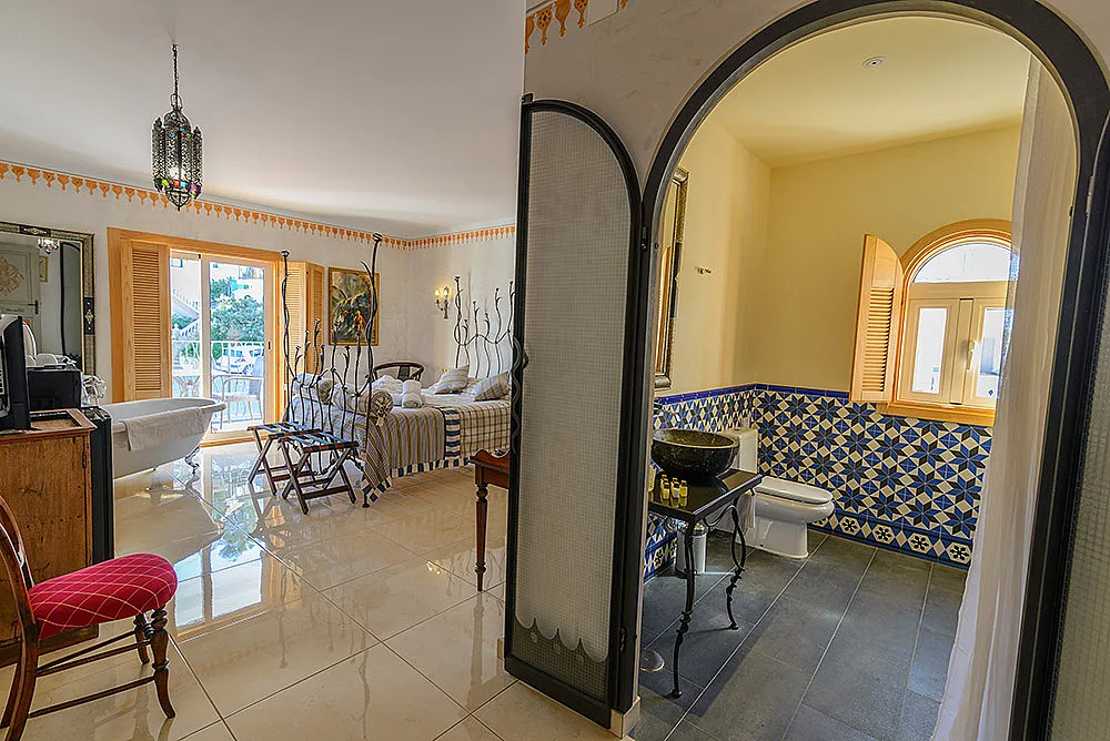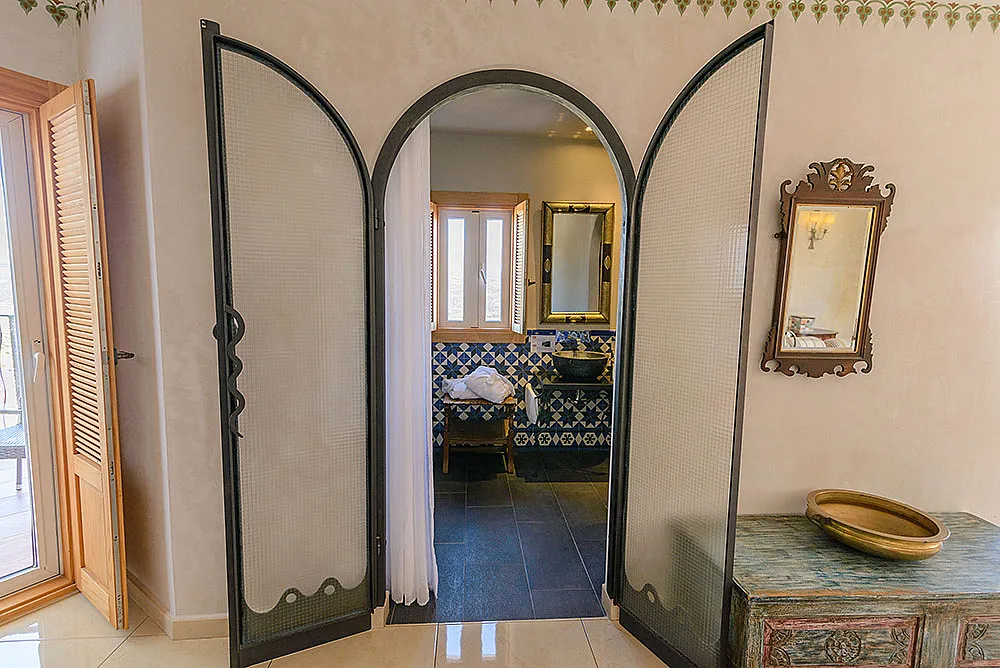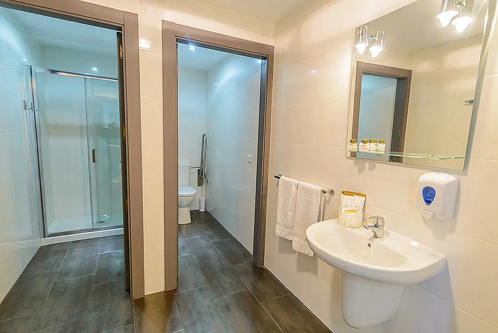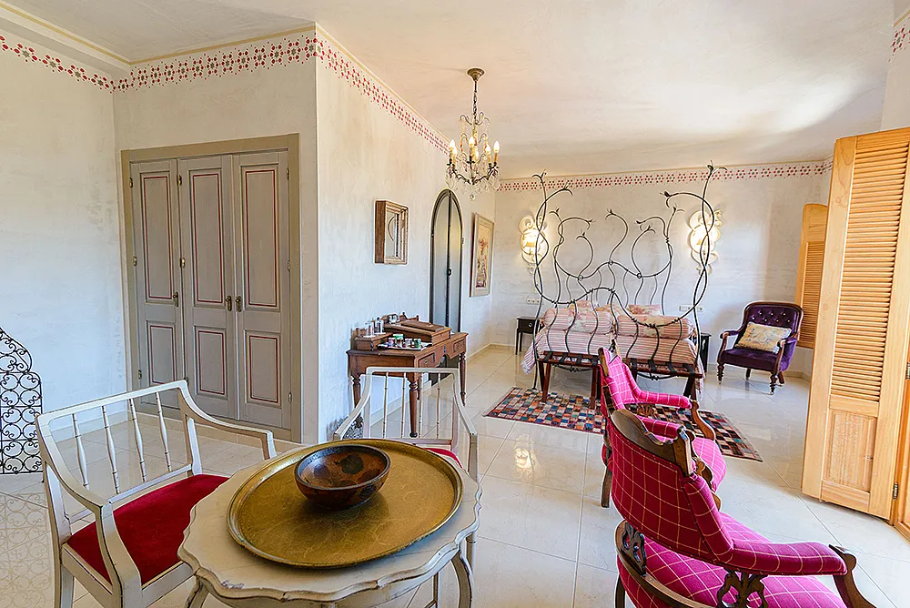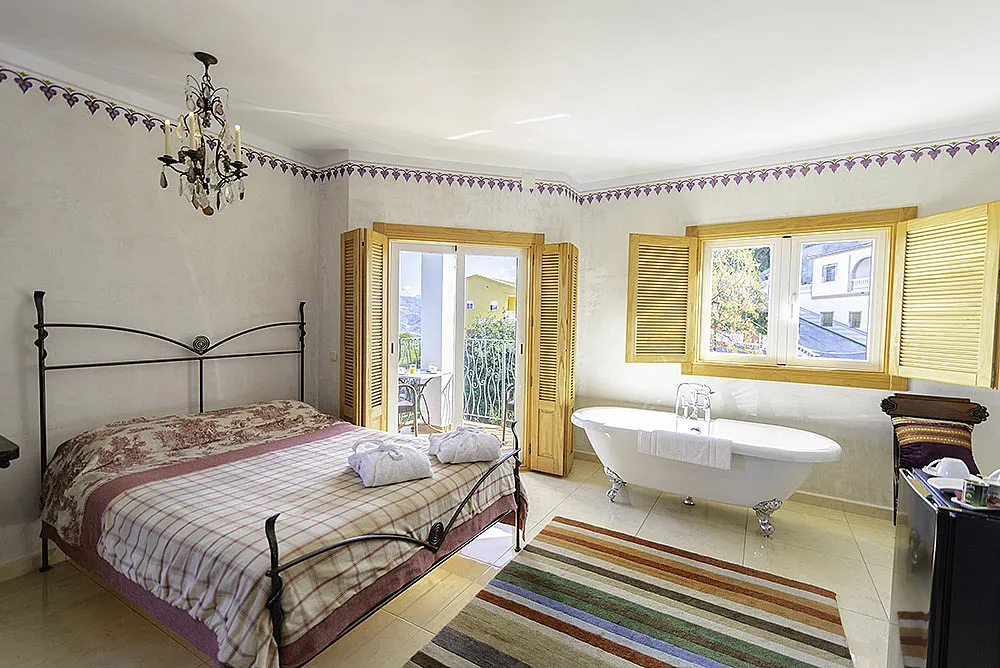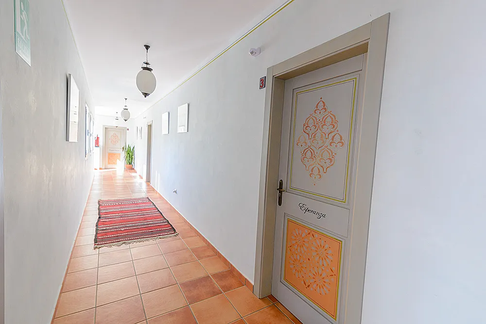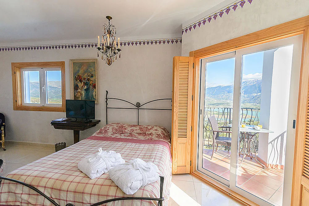 Seis habitaciones con cama de matrimonio, terraza y baño privado con ducha y bañera. Una habitación con dos camas de matrimonio y baño y una habitación familiar con capacidad hasta dos adultos y cuatro niños con baño.