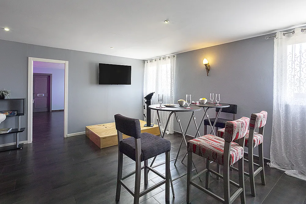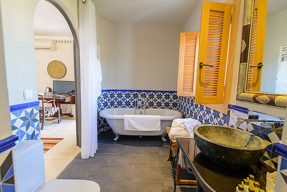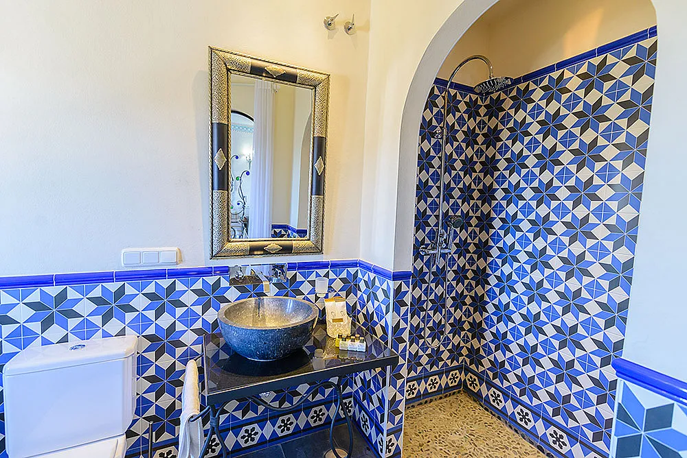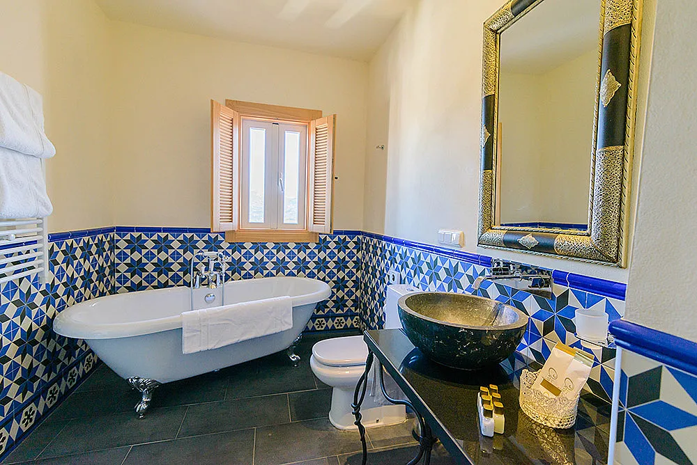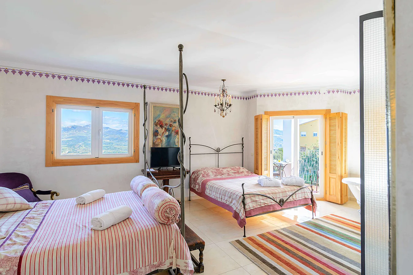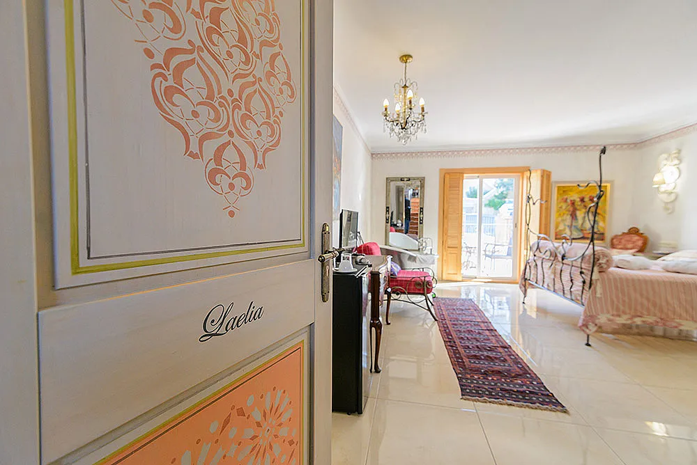 Seis habitaciones con cama de matrimonio, terraza y baño privado con ducha y bañera. Una habitación con dos camas de matrimonio y baño y una habitación familiar con capacidad hasta dos adultos y cuatro niños con baño.