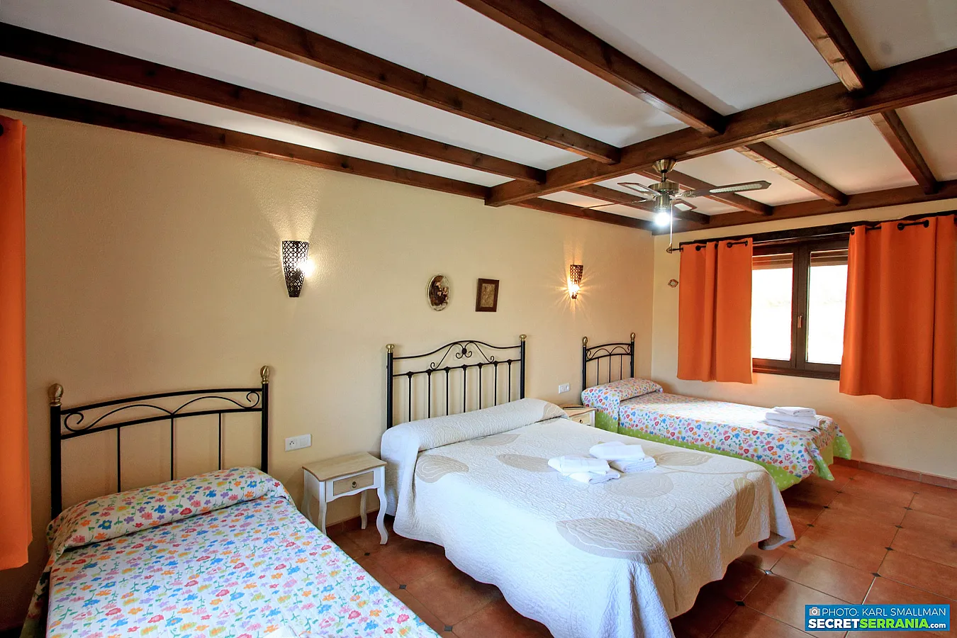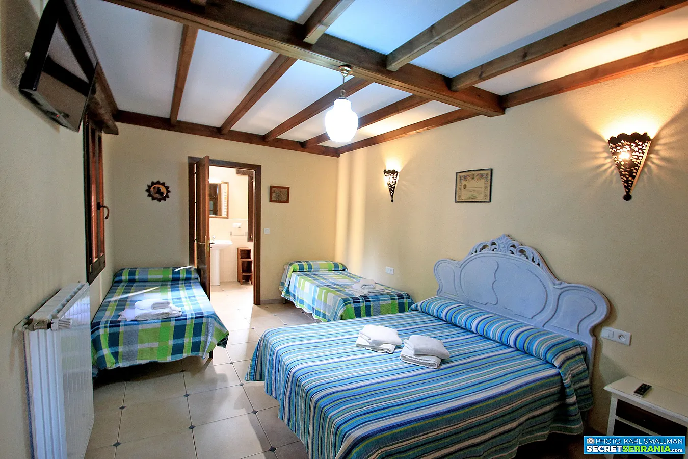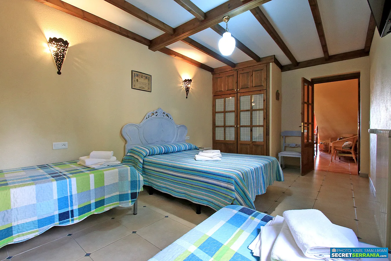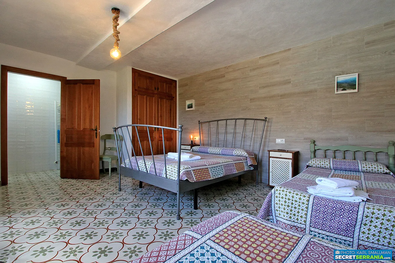 - Dormitorio 3: Cama de matrimonio, 1 cama pequeña, cuarto de baño.