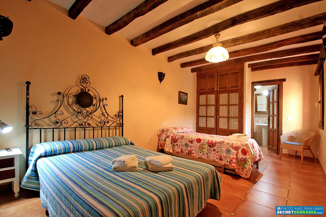 - Dormitorio 1: Cama de matrimonio, 2 camas pequeñas, cuna, cuarto de baño y vestidor.