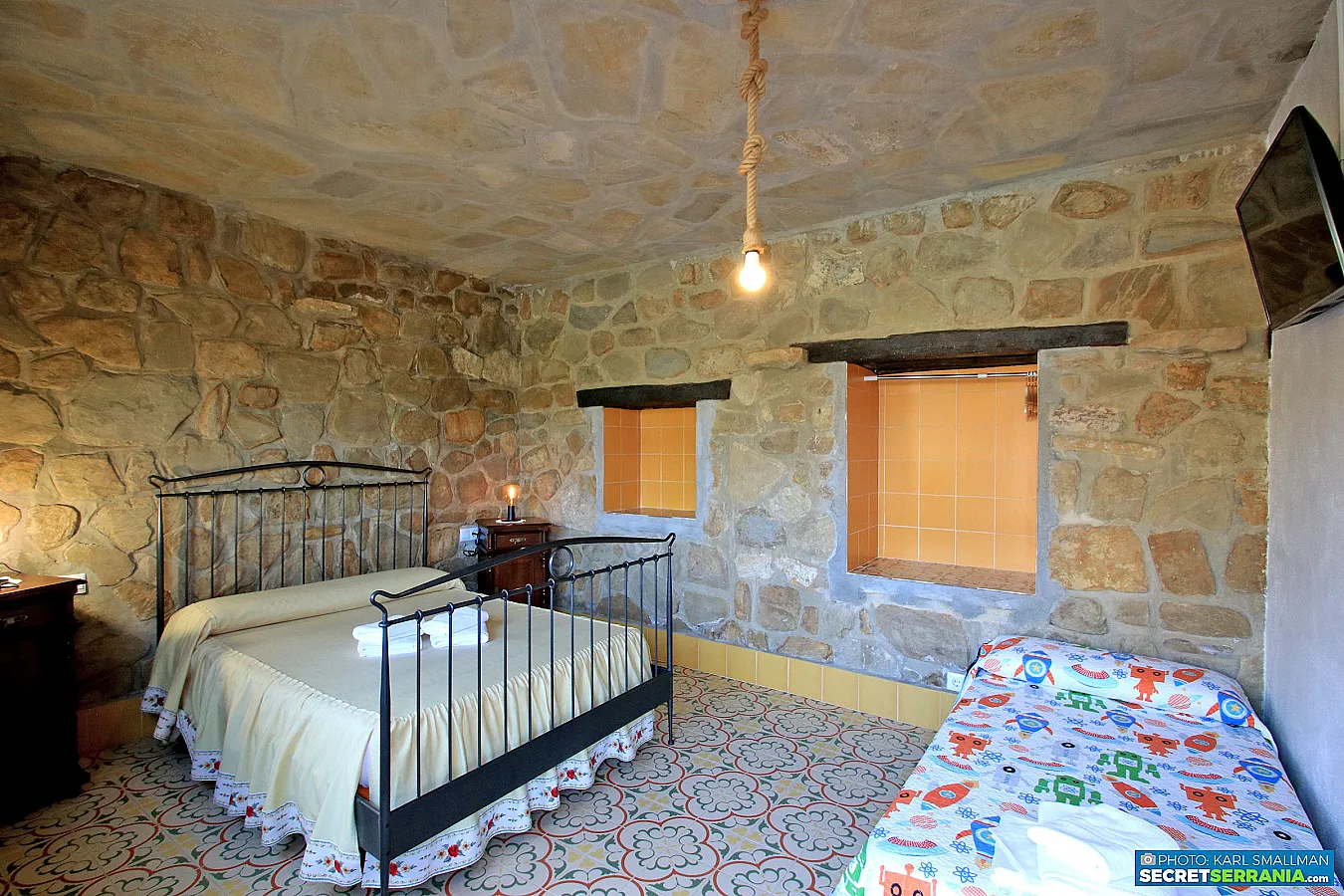 - Dormitorio 6: Cama de matrimonio, 1 cama pequeña, cuarto de