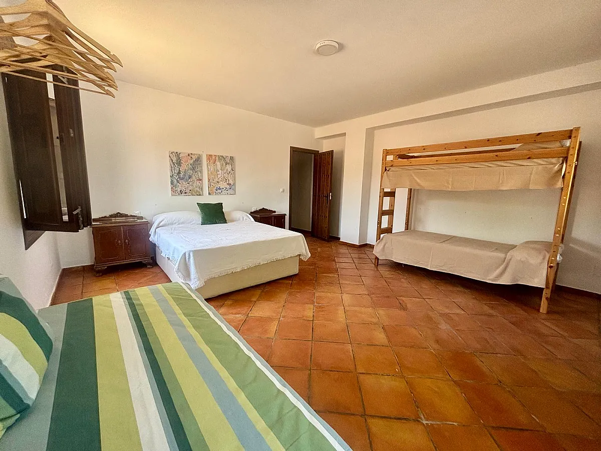 El exterior del alojamiento ofrece un gran porche con vistas a la naturaleza, una piscina rodeada de hamacas y una zona de barbacoa con paellera portátil, ideal para disfrutar en grupo. La finca admite mascotas con previo aviso, y dispone de espacio para guardar bicicletas.