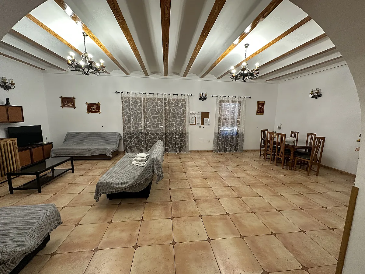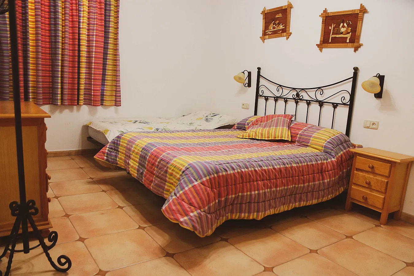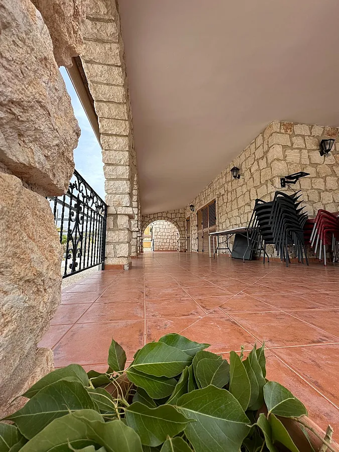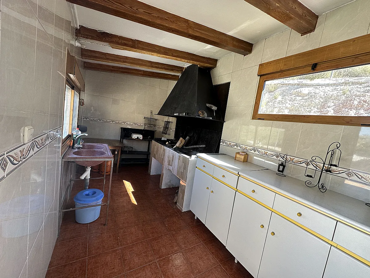 Tiene 4 habitaciones (3 de ellas con cama de matrimonio y cama de 1,05 y otra con cama de matrimonio) tres cuartos de baño completos; cocina grande con isla, galería y despensa; comedor-sala de estar con estufa de leña y tres sofás-cama de matrimonio. Dos terrazas; barbacoa cerrada con tres fuegos; caseta de piscina con chimenea y baño incluido y piscina. Todo en un terreno de 5000 m cuadrados