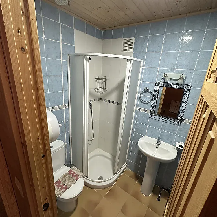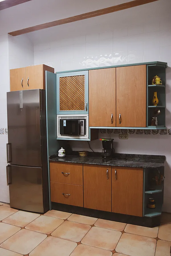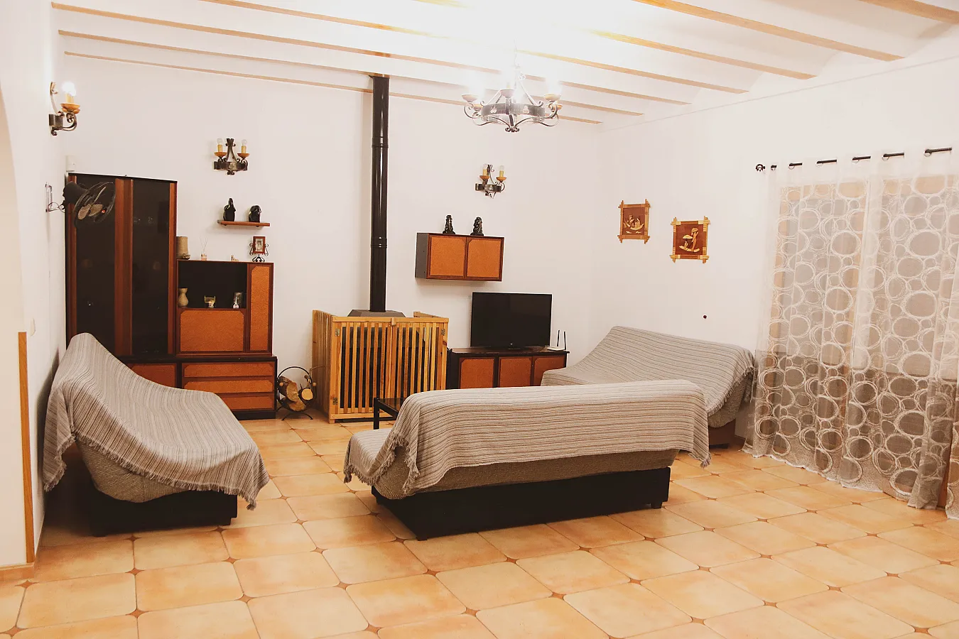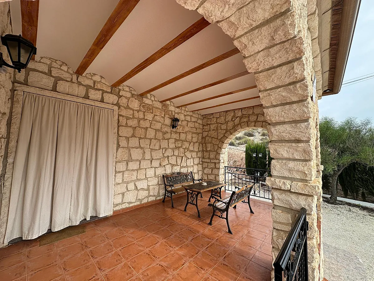 Tiene 4 habitaciones (3 de ellas con cama de matrimonio y cama de 1,05 y otra con cama de matrimonio) tres cuartos de baño completos; cocina grande con isla, galería y despensa; comedor-sala de estar con estufa de leña y tres sofás-cama de matrimonio. Dos terrazas; barbacoa cerrada con tres fuegos; caseta de piscina con chimenea y baño incluido y piscina. Todo en un terreno de 5000 m cuadrados