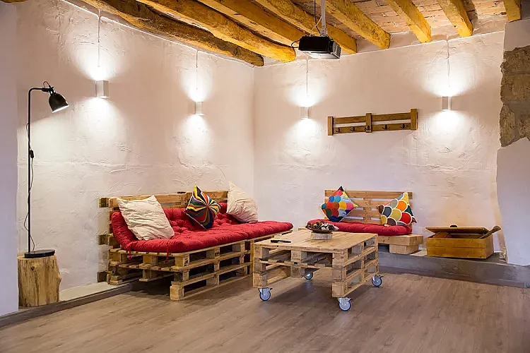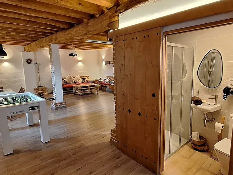 La planta baja es un txoko que cuenta con aseo y que tiene futbolín, proyector y juegos para niños de distintas edades, mobiliario de jardín y barbacoa.