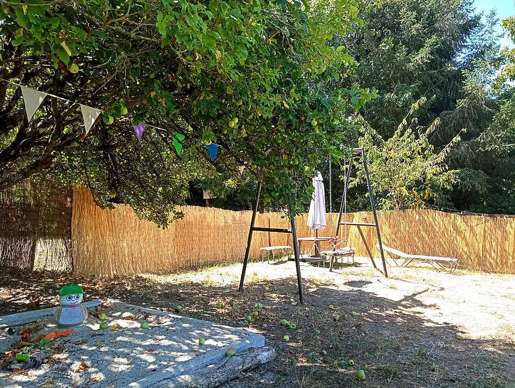 Uno de los grandes atractivos de Casa La Arboleda es su zona exterior. La finca incluye un jardín extenso, piscina de 8x4 metros, barbacoa y una zona infantil con columpios y arenero.