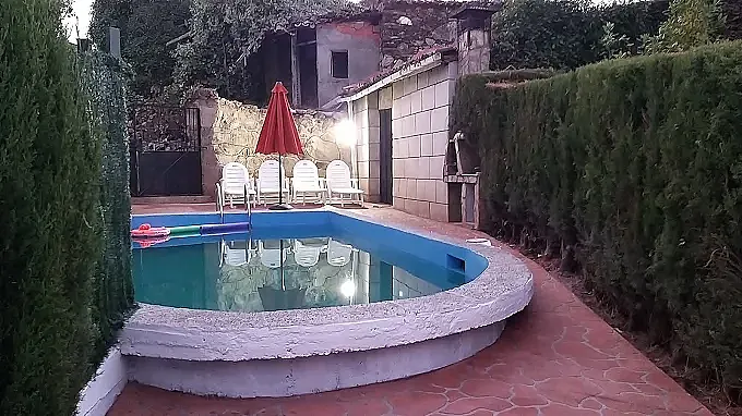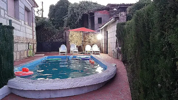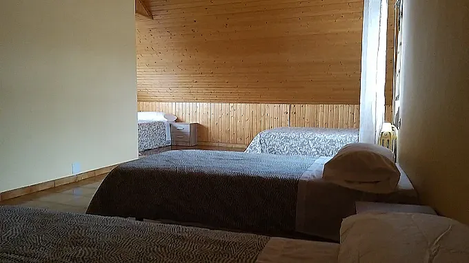 El ático alberga un dormitorio cuádruple abuhardillado con 4 camas individuales y un sofá cama, junto con una terraza amplia y amueblada para disfrutar del paisaje. Las zonas exteriores incluyen un amplio jardín, piscina y un porche con barbacoa y mobiliario de exterior.