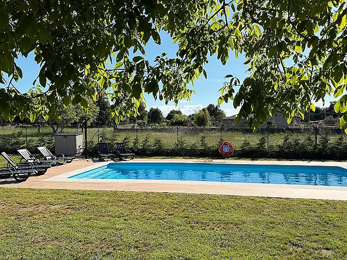 En el exterior, una pérgola con sofás y mesas permite disfrutar del aire libre, así como una piscina de 10 metros y una parrilla para comidas al aire libre. También hay parking privado disponible para los huéspedes.