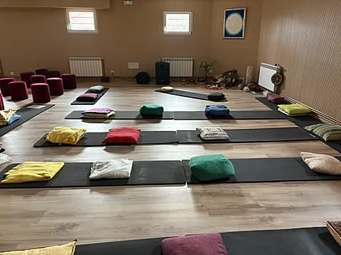 Un refugio de calma y recogimiento, creado para acompañar prácticas que invitan a la presencia y al bienestar. Un espacio versátil y acogedor, ideal para yoga, meditación, pilates, mindfulness, vipassana, danzas, talleres de música, masajes, eutonía, chikung, baños sonoros, etc. y formaciones varias.