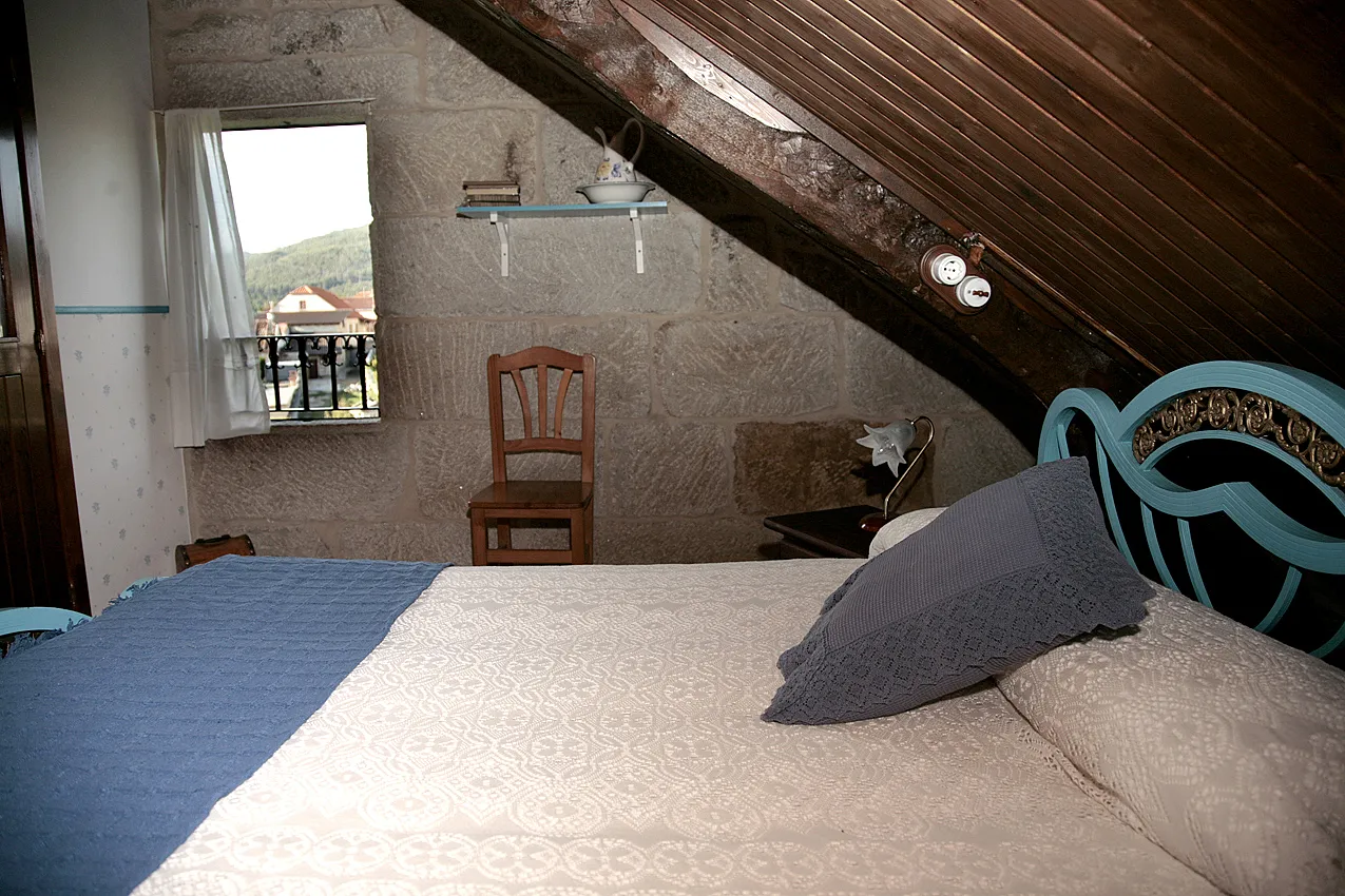 Es una edificación de dos alturas, que cuenta con 4 habitaciones dobles, cada una de ellas con su baño, una cocina totalmente equipada presidida por una lareira de considerables dimensiones y un espacioso salón ubicado en la planta superior de la casa.