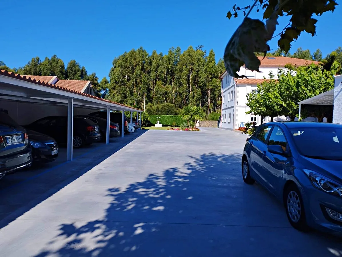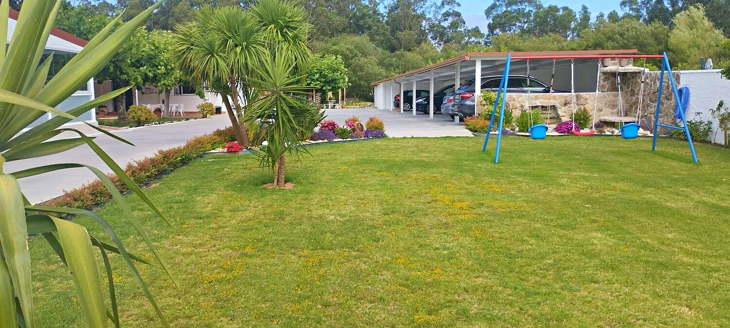 El alojamiento está en un ficna con un ámplio jardín y terreno así como parking para los clientes.