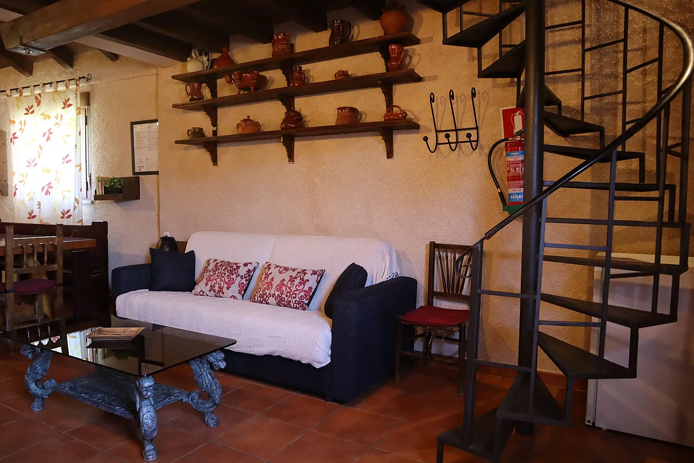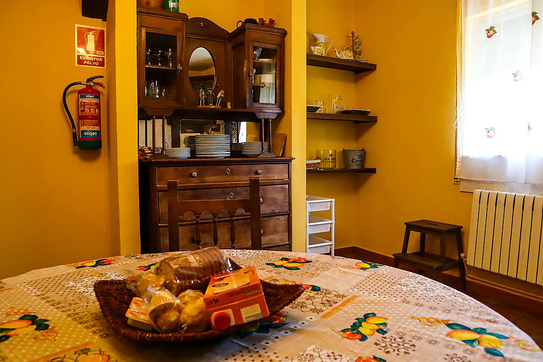 La Casa rural Las Cruces, tiene de 2 habitaciones dobles, 1 triple, salón comedor de unos 50 m2, cocina equipada con lavavajillas, nevera, sandwichera, cafetera, etc. Un baño completo y un aseo.