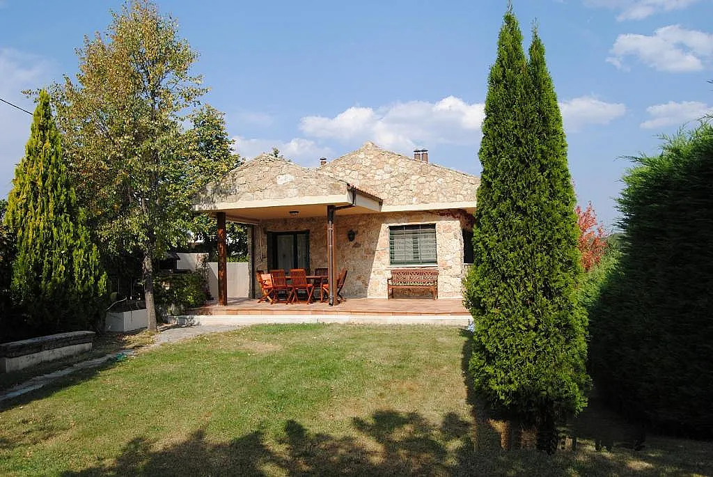 En el exterior, la casa está rodeada de jardín y dispone de barbacoa, fuente y grandes porches, zonas muy agradables para pasar tiempo al aire libre.