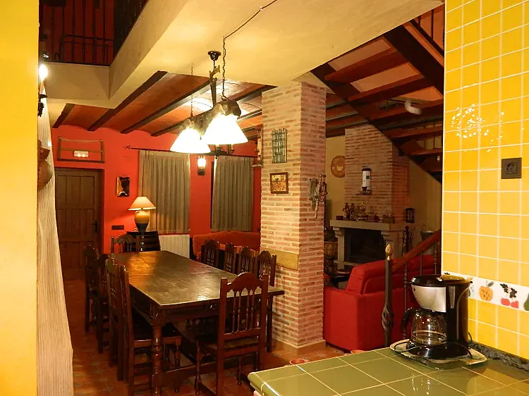 El salón principal tiene 55 m², con una gran mesa y espacio para hasta 14 personas, televisión de 43” y equipo de audio. La cocina está equipada con todo lo necesario para largas estancias, incluyendo menaje y pequeños electrodomésticos.