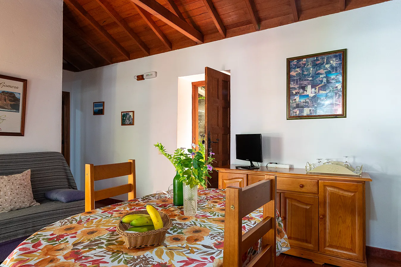 Hermigua, con su parque y paisajes de palmeras y montañas, es un entorno ideal para disfrutar de la naturaleza. Además, la cercanía al Parque Nacional de Garajonay, famoso por sus bosques de laurisilva y fauna endémica, convierte este alojamiento en un lugar ideal para descubrir La Gomera.