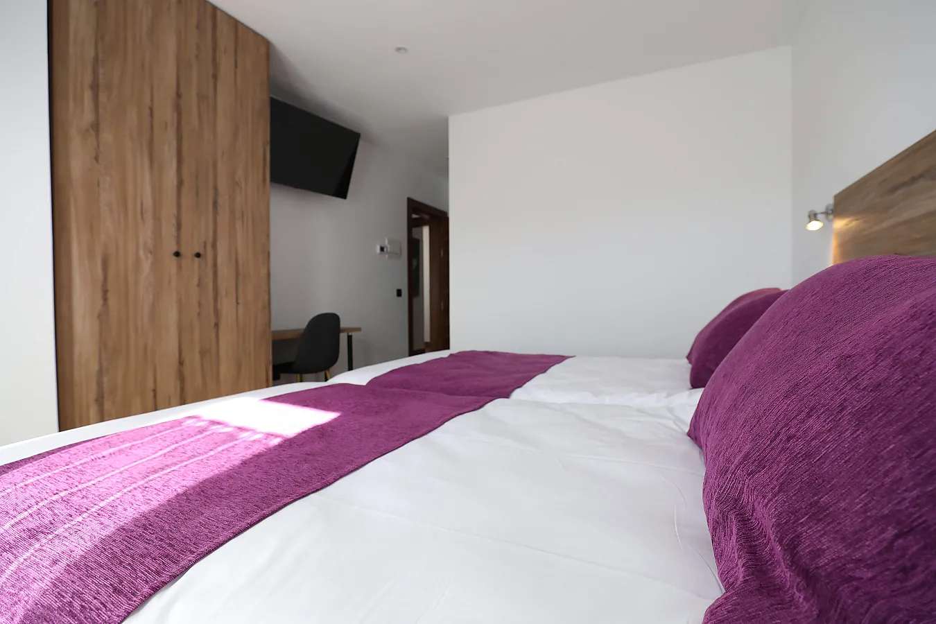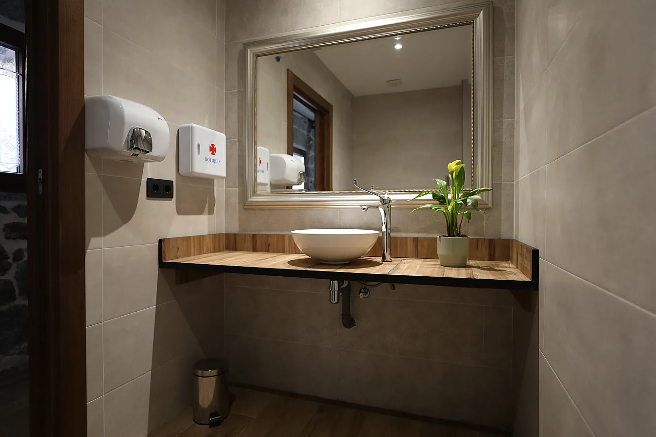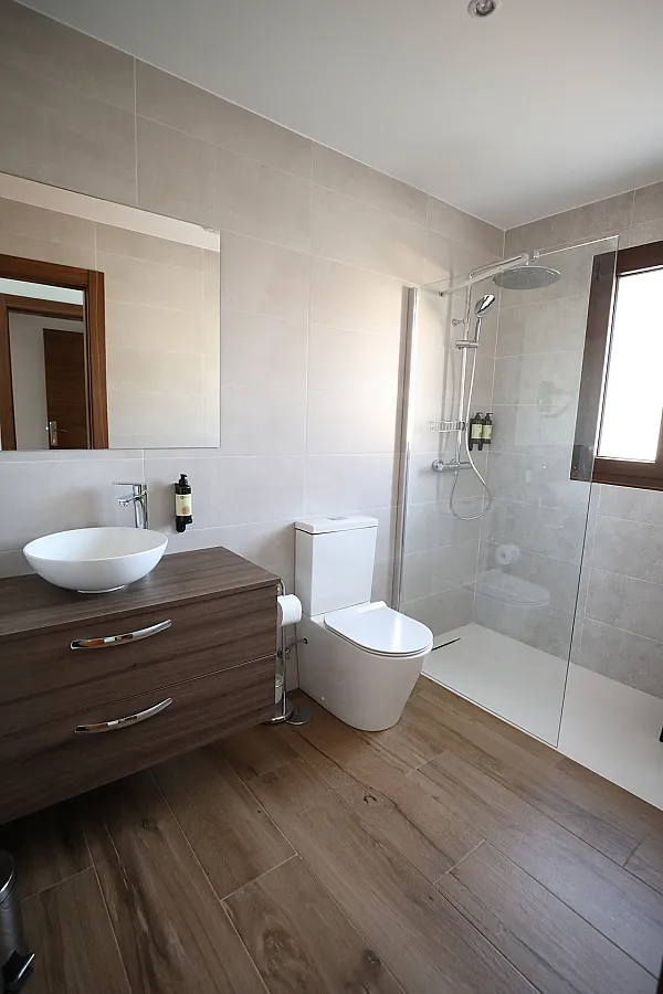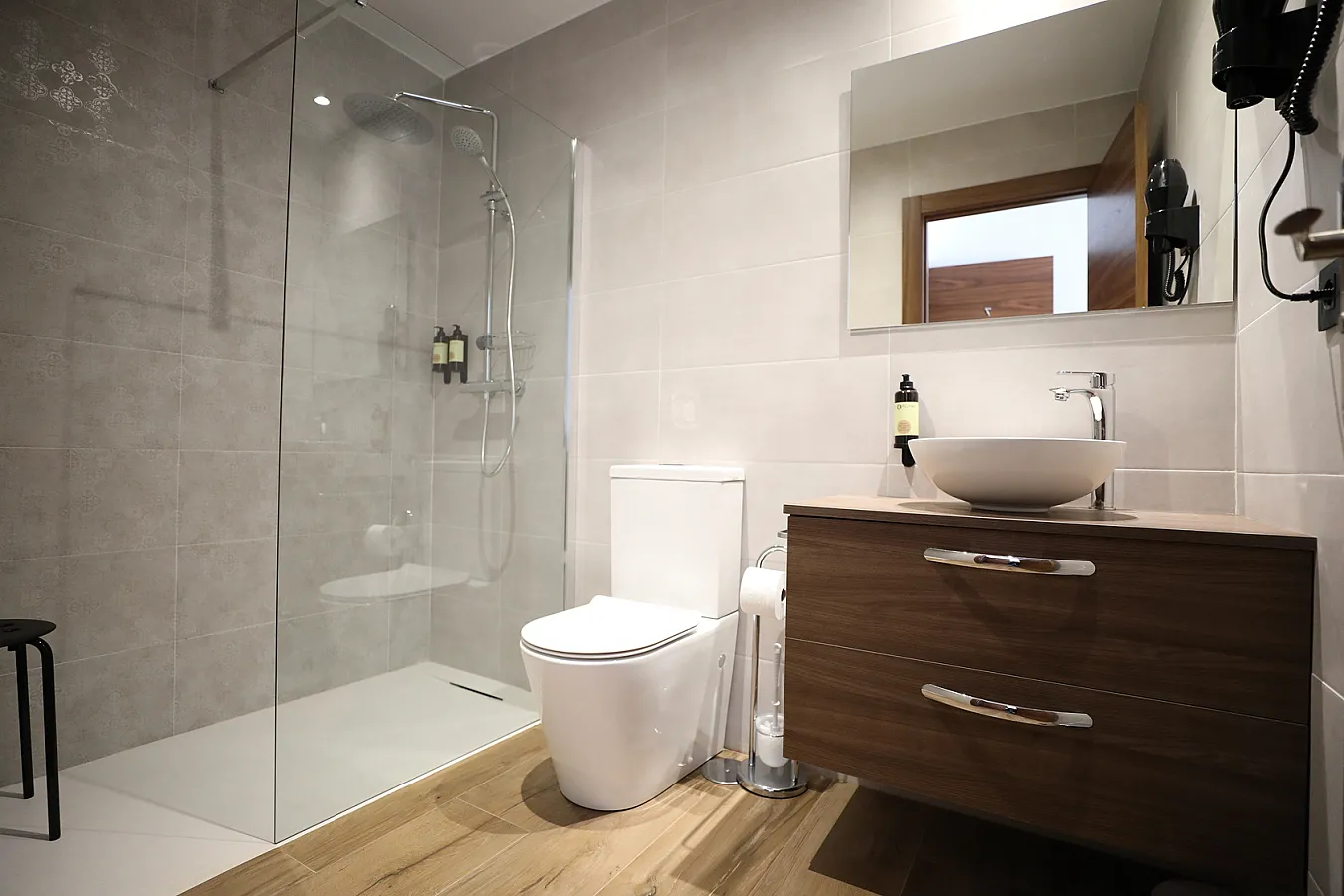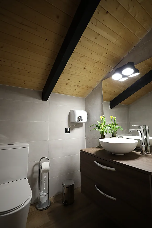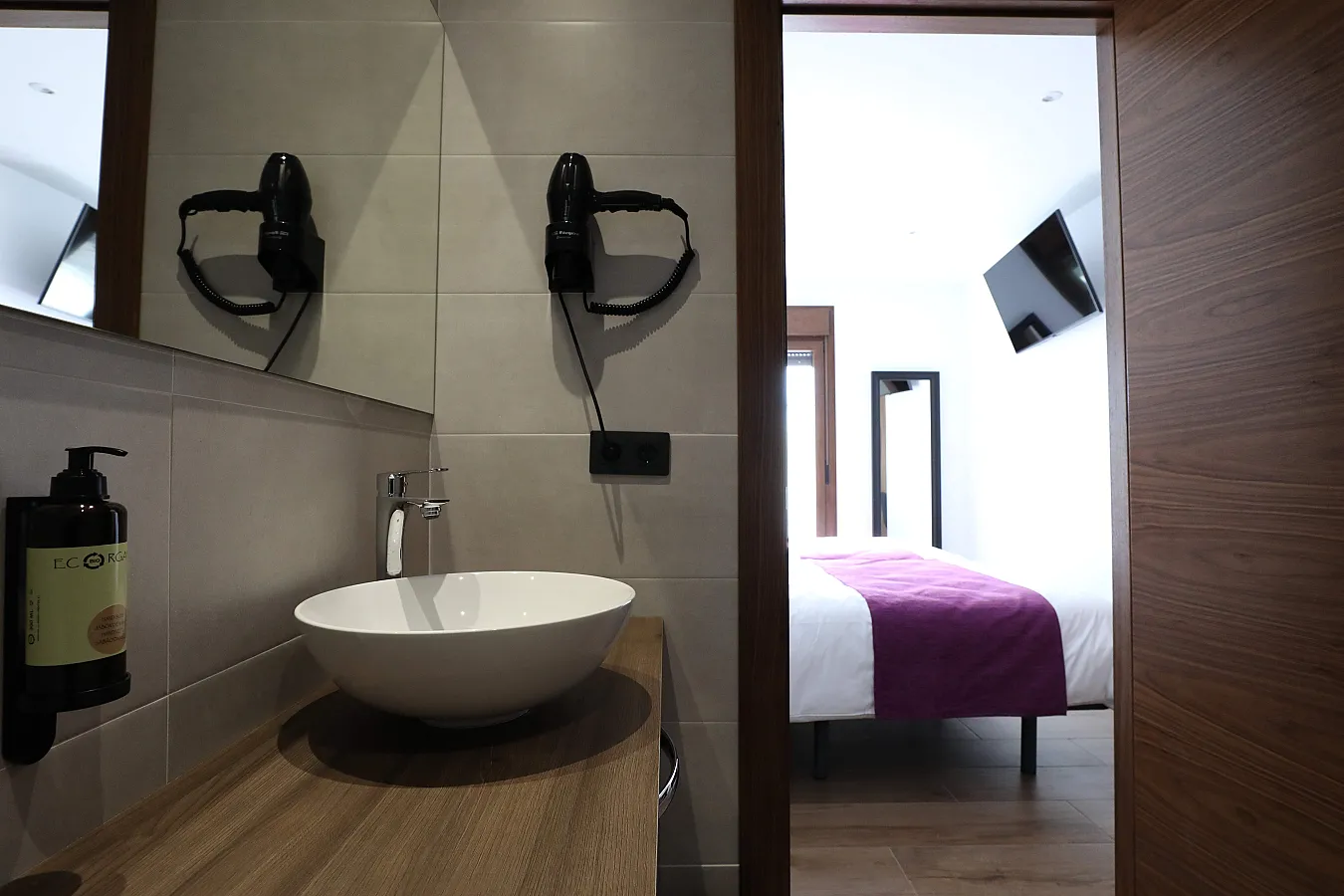 En la planta baja se han habilitado 2 habitaciones con baño adaptadas para personas con movilidad reducida, lo que garantiza la accesibilidad de todos los huéspedes. En la primera planta se encuentran 6 habitaciones comunicadas, cada una con baño privado y balcón, lo que aporta intimidad y comodidad a los grupos.