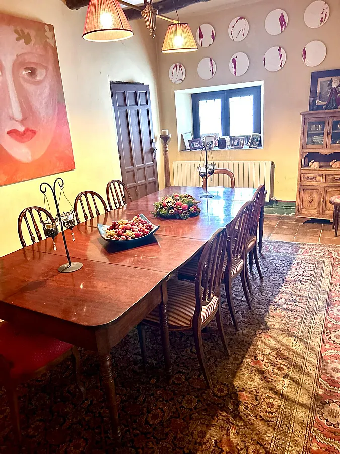 Entre sus muchas comodidades, el caserío dispone den magnífico salón con una gran chimenea, con un comedor con capacidad para 20 personas, una cocina y un office con otra chimenea, lo que lo hace ideal para disfrutar coin la familia y/o amigos en Invierno. Para el verano, además de lo ya descrito, dispone de un magnífico porche, piscina, barbacoa, pista de pádel, mesa de ping-pong y varios juegos de mesa, ofreciendo entretenimiento para todos los gustos. Estas instalaciones lo convierten en un lugar perfecto tanto para un fin de semana tranquilo en familia como para estancias más largas, especialmente en verano.