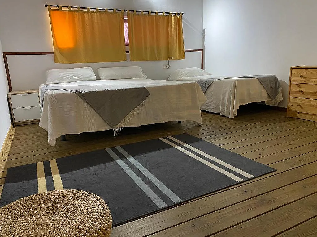 En un altillo de madera con balconada hacia el salón se ubica la zona de dormitorio principal, donde hay 4 camas individuales. El cuarto de baño es cerrado e independiente.
