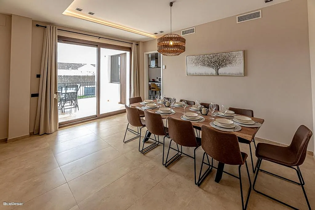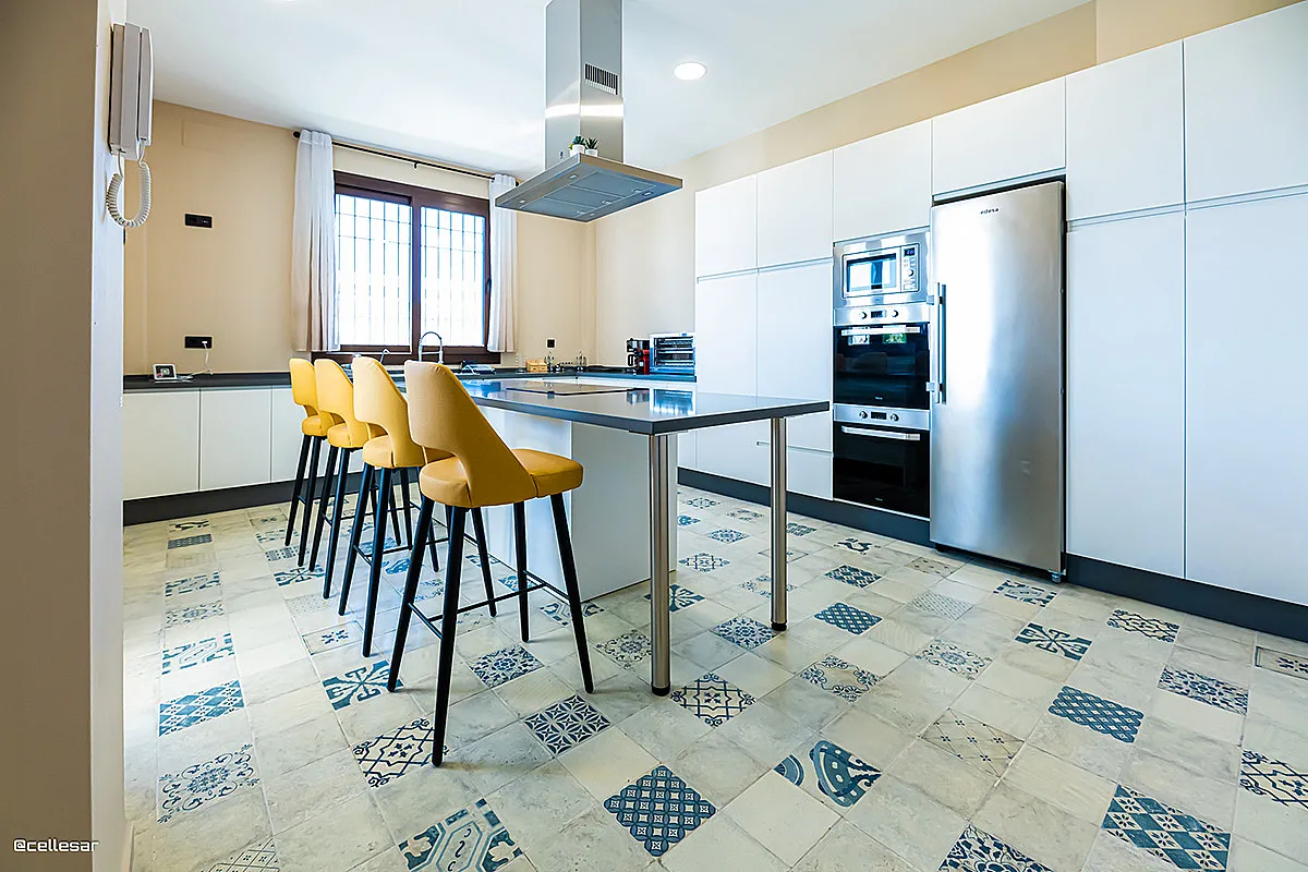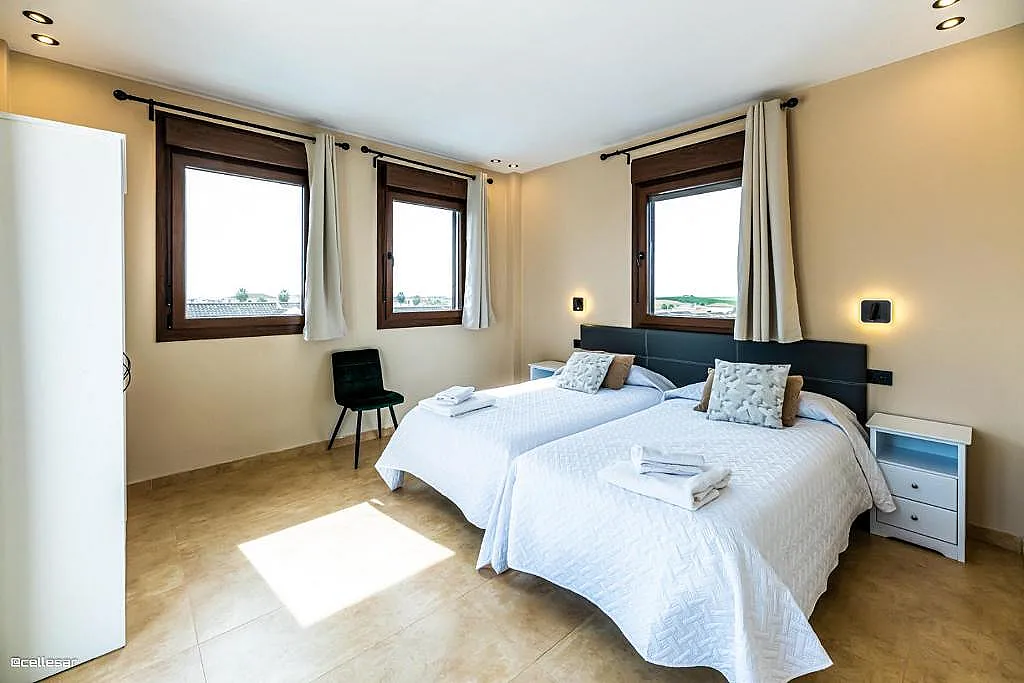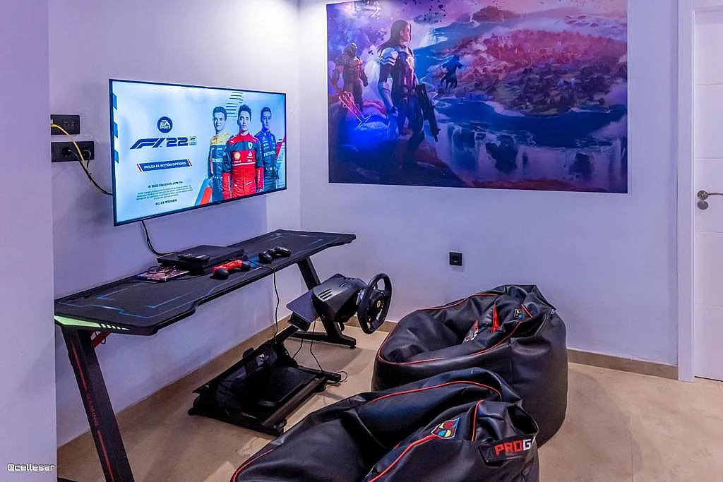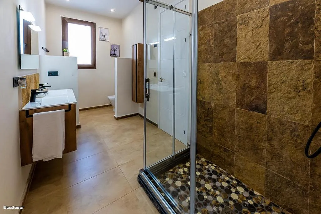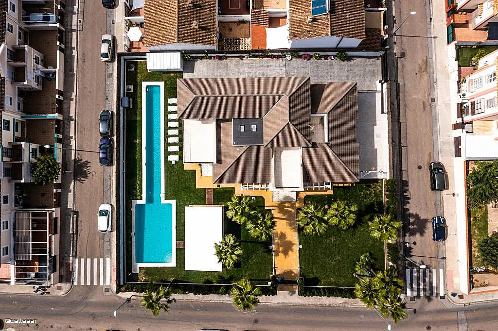 La casa se distribuye en varias plantas. En la planta baja se encuentran la cocina con acceso a una terraza con vistas a la piscina, el salón-comedor, 3 dormitorios y 2 baños. En la planta superior se ubican los dormitorios restantes. El sótano está dedicado íntegramente al ocio: cine, mesa de ping-pong, zona gaming, bar, karaoke, futbolín, jacuzzi para 12 personas y baño turco.