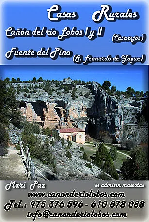 Fuente del Pino. Nos encontramos en el centro del Parque Natural "Cañón del Rio Lobos" en San Leonardo de Yagüe, y muy cerquita de la Laguna Negra, en la zona de pinares.Se admiten mascotas.