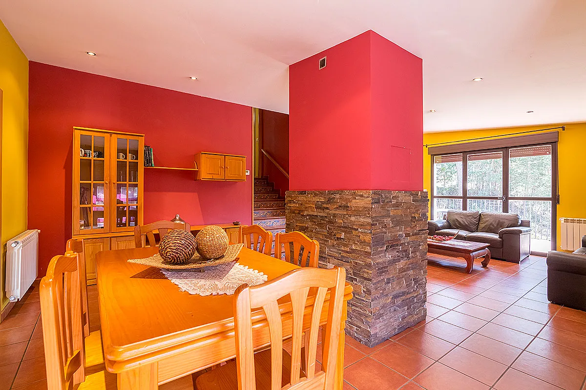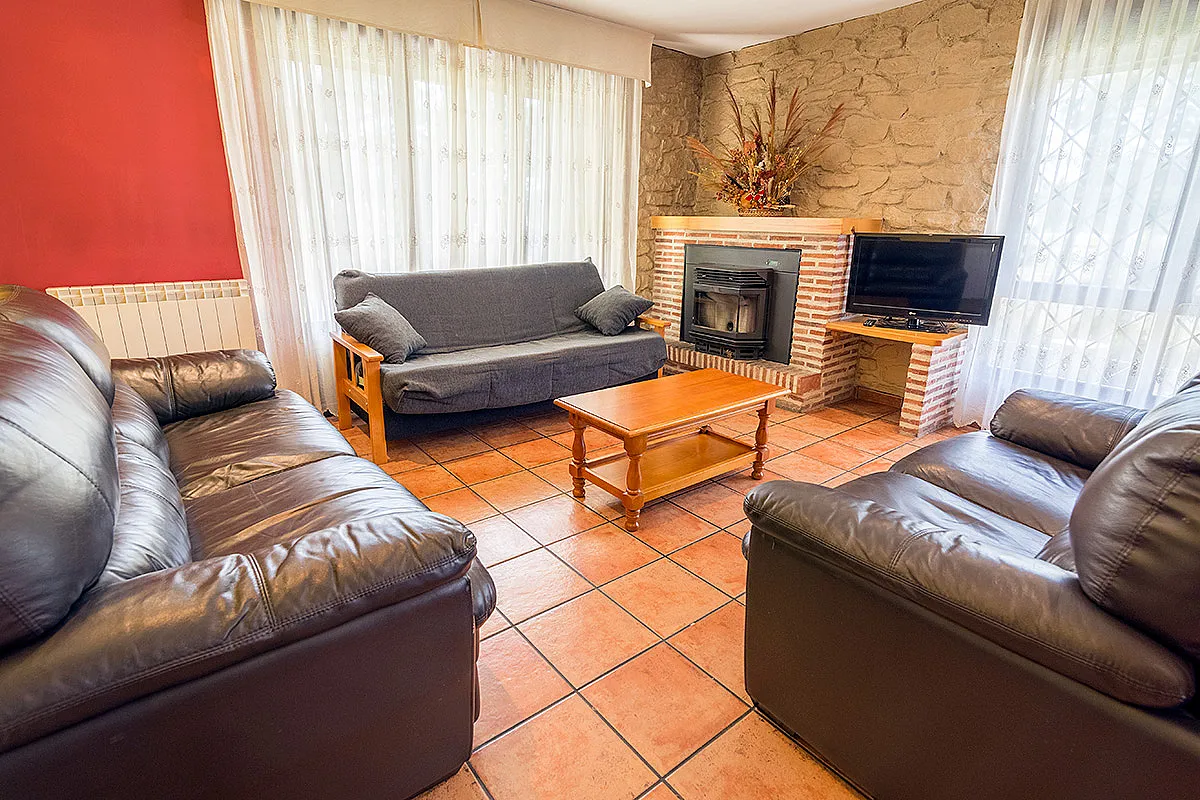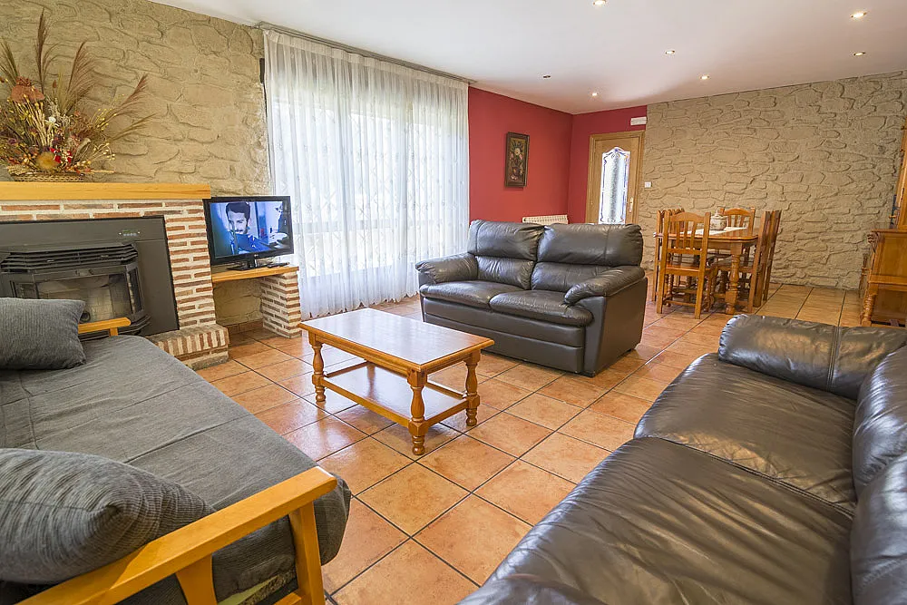 La casa dispone de 1 a 7 plazas, distribuidas en 3 Habitaciones con 2 baños completos, uno tipo suit dentro de la habitación de matrimonio, con secador de pelo. El salón comedor super grande con chimenea y piedra caravista en dos de sus paredes, cuenta con tres sofás, uno de ellos cama, jardín, barbacoa, etc...