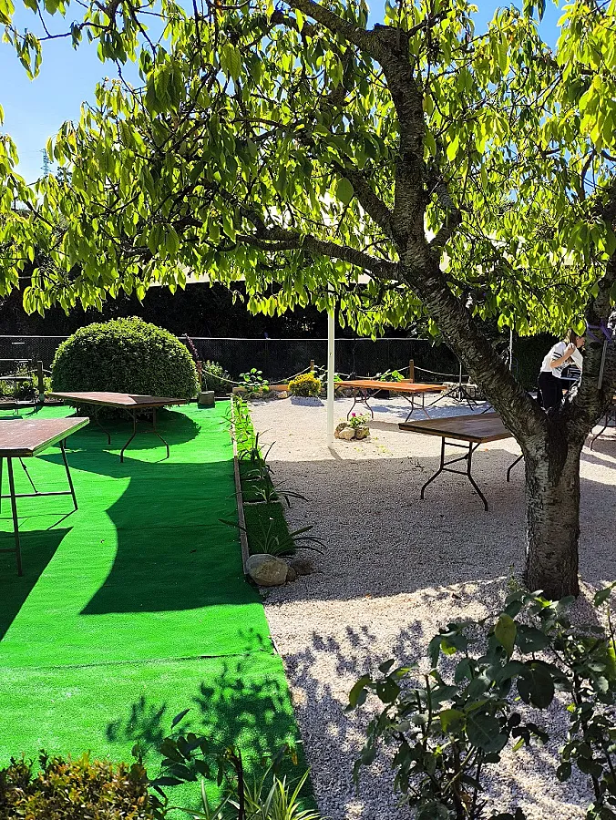 El patio ajardinado con barbacoa y horno de leña es otro de los atractivos de este alojamiento, brindando un espacio ideal para disfrutar de comidas al aire libre en buena compañía.