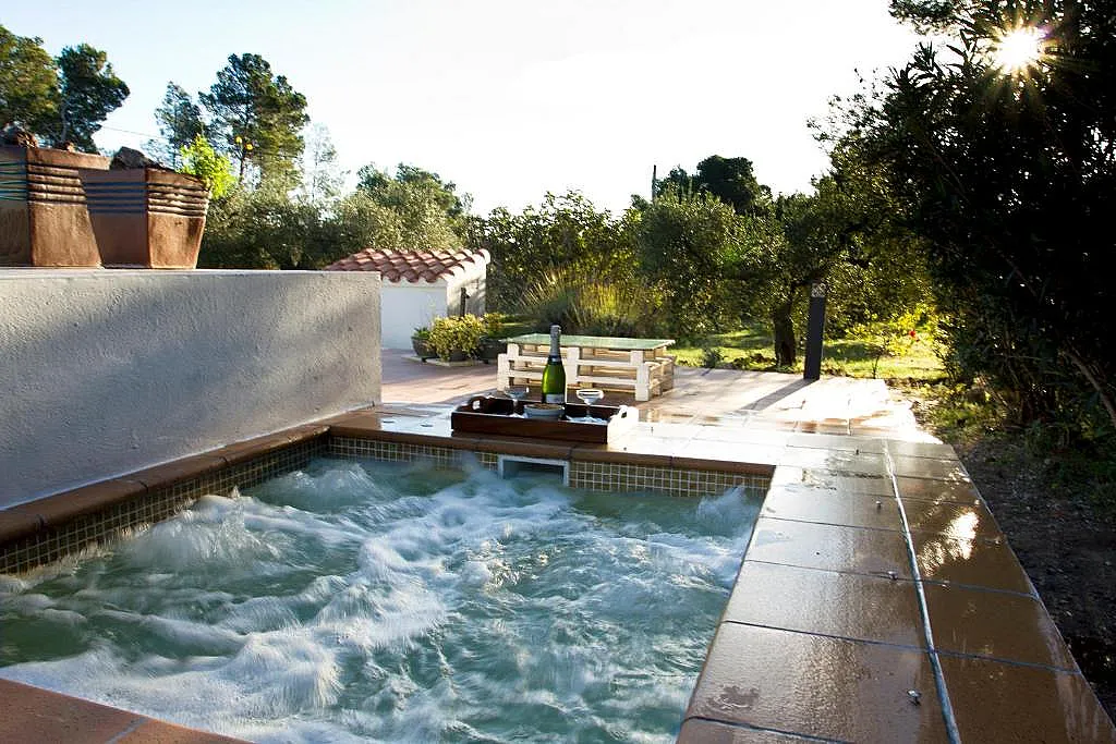 El exterior es uno de los grandes atractivos de Ca l’Eli. La casa está rodeada de olivos y árboles frutales y cuenta con un jardín muy cuidado en el que se encuentran el jacuzzi, una piscina con vistas al bosque y una zona de barbacoa.