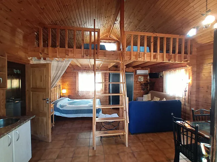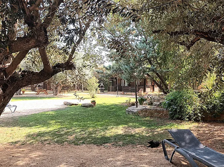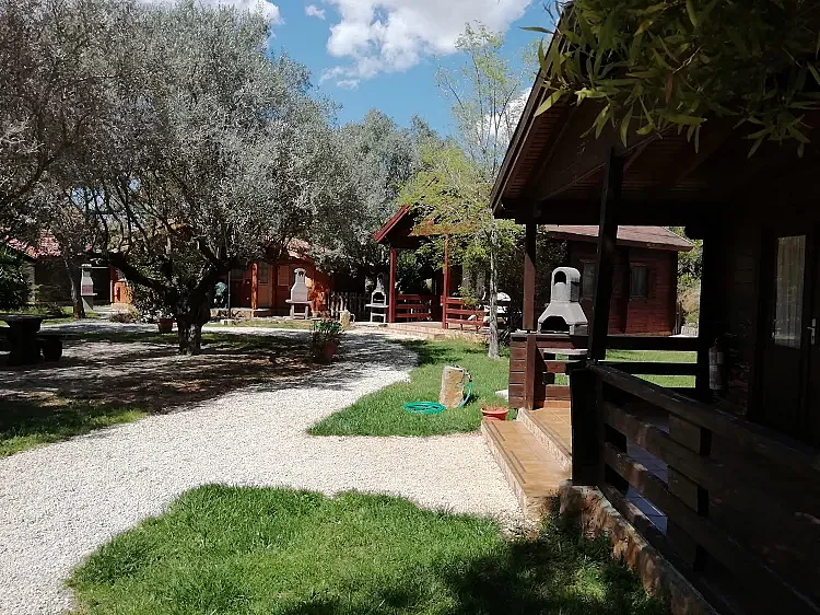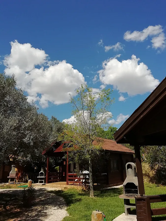 Cabañas de madera completamente equipadas y climatizadas con cocina y barbacoa propia de distintas capacidades entre 2 y 6 personas, que se distribuyen dentro de una finca privada de 3.500 m2 con preciosos Olivos Centenarios