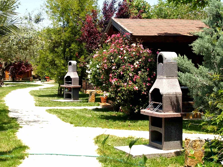 Cabañas completamente equipadas y climatizadas con cocina y barbacoa propia con un jardín precioso