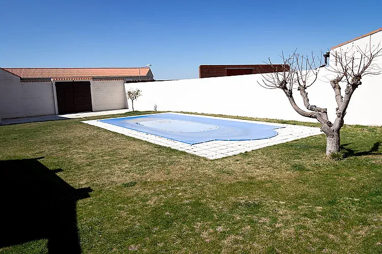 El exterior ofrece un amplio patio ajardinado de 700 m² con piscina, ideal para actividades al aire libre y momentos de recreo. Las instalaciones se alquilan siempre de forma íntegra, garantizando la privacidad del grupo que se aloje.