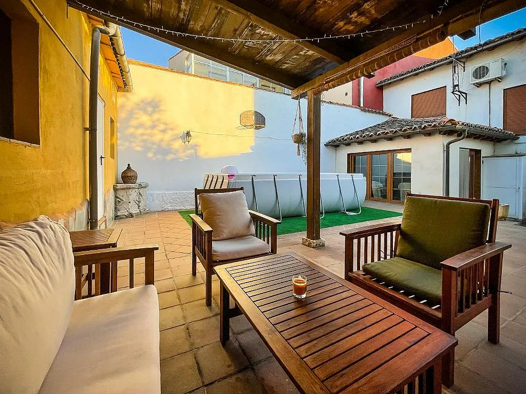 Durante el verano, el protagonismo lo toma el patio, que cuenta con piscina y una zona chill out pensada para relajarse al aire libre. El diseño de la casa, sencillo pero cuidado, invita a disfrutar tanto del interior como del exterior sin artificios.