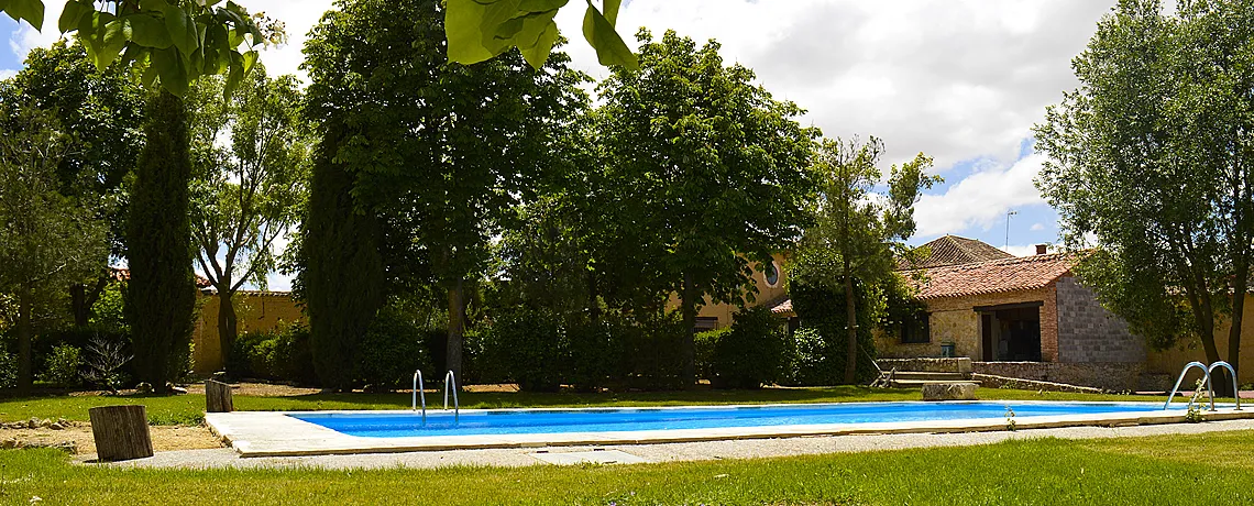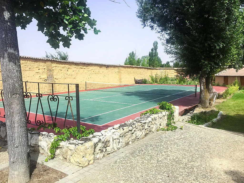 El jardín es uno de sus grandes atractivos: 7.000 m² completamente cerrados por muros de tapial de 3 metros de altura, con zonas diferenciadas de vegetación, huerto, zona pavimentada y espacio deportivo. Entre árboles autóctonos y frutales, se puede disfrutar de la piscina, la cancha de tenis y una amplia zona de relax.