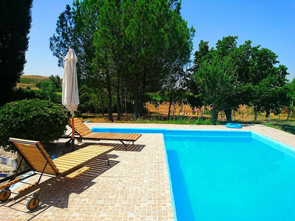 Uno de los grandes atractivos es su amplio jardín con piscina privada, tumbonas y sombrillas, donde es fácil relajarse escuchando las aves del entorno. El porche cubierto es perfecto para compartir comidas y cenas al aire libre, con vistas al paisaje que rodea la casa. También se admiten mascotas.