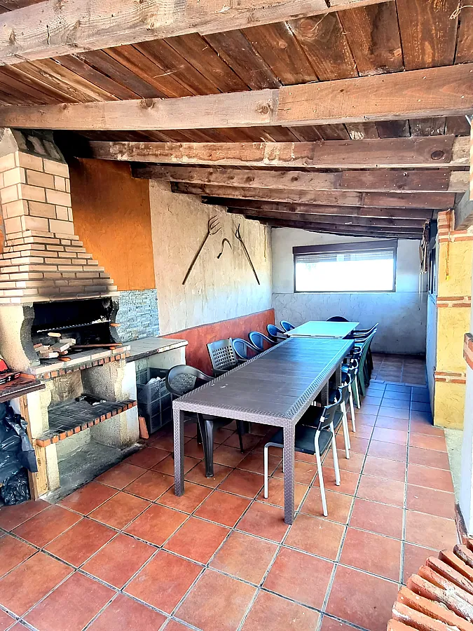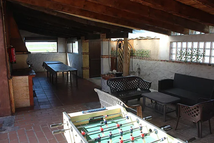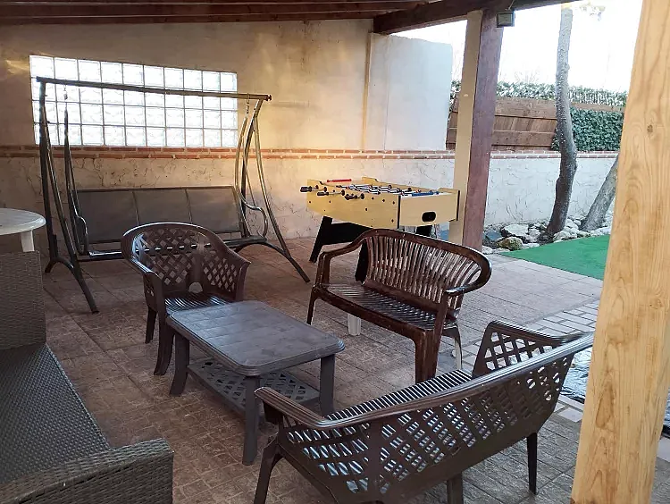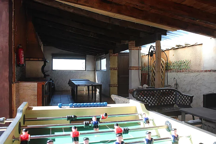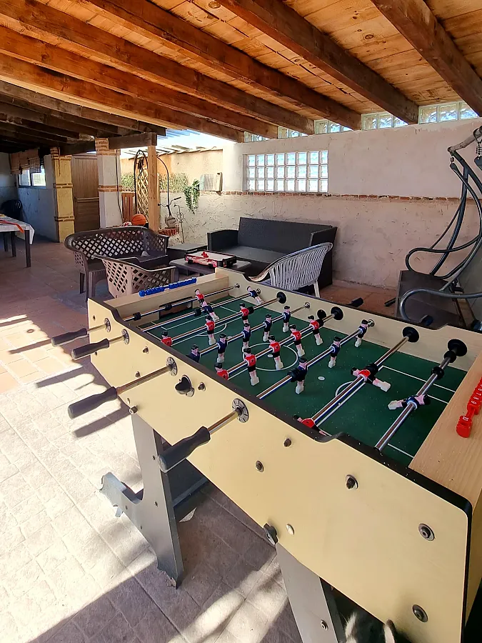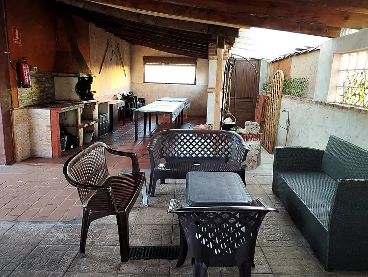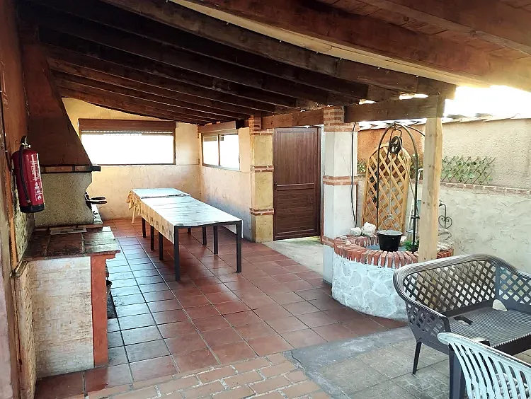 El equipamiento tecnológico incluye wifi en toda la casa, televisión con Chromecast y acceso a canales como Disney Channel o Amazon Prime. En el exterior, se reparten dos patios, uno con merendero cubierto y barbacoa, y otro con parque infantil. El aparcamiento permite dejar varios vehículos sin dificultad.