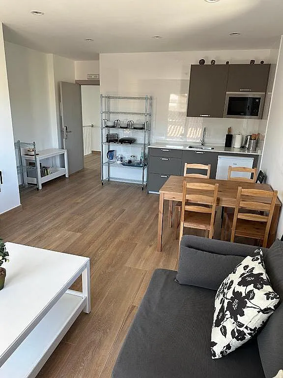 Los 2 salones-cocina están equipados con electrodomésticos, menaje y estufa de leña, mientras que la calefacción y el agua caliente funcionan mediante aerotermia con suelo radiante. A ello se suman placas solares, wifi de alta velocidad, botiquín y entrada autónoma con móvil o tarjeta.