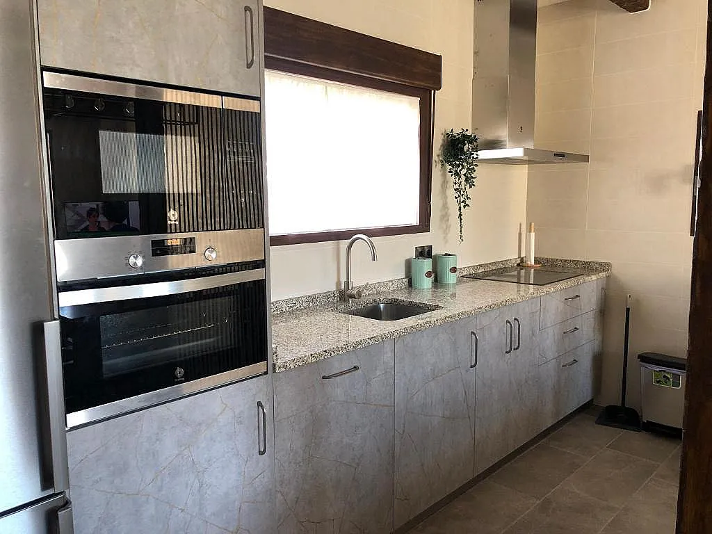 Dispone de 3 habitaciones: una en la planta baja con cama de 150 cm, y dos en la planta superior, una con cama de 160 cm y otra con dos camas de 140 cm. Además, la salita de la segunda planta incluye una cama de 105 cm. Todas las estancias cuentan con Smart TV y la vivienda dispone de 3 cuartos de baño.
