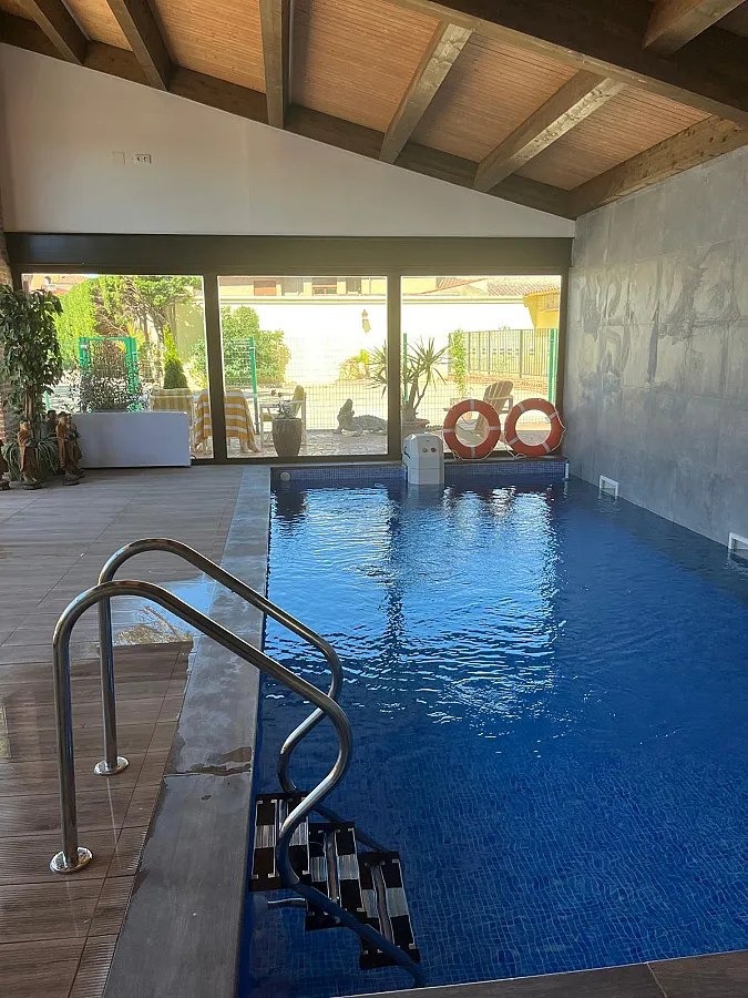 El alojamiento no solo sorprende por su originalidad decorativa, sino también por sus instalaciones. Cuenta con una piscina climatizada rodeada de naturaleza, perfecta para relajarse en cualquier época del año. También dispone de un gimnasio completamente equipado y una sauna que complementan una oferta pensada para el bienestar físico y mental.