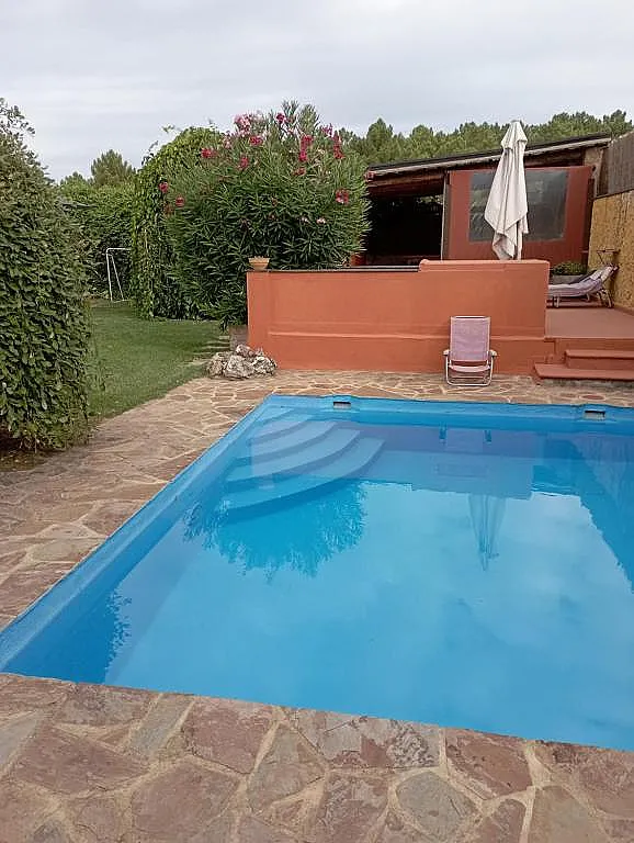 El exterior de la casa invita al disfrute al aire libre, con una zona ajardinada que incluye piscina y barbacoa, ideal para los días de buen tiempo. Además, la casa dispone de aparcamiento propio